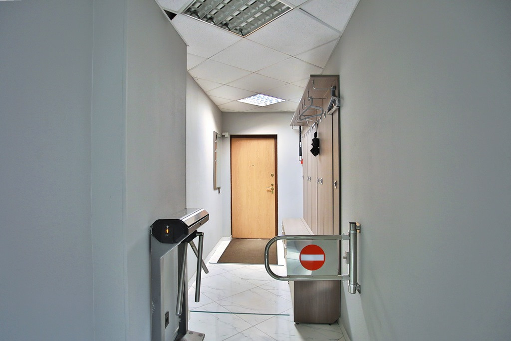 В офисе оборудована система контроля управления доступа, введена в эксплуатацию, произведена подготовка для установки считывателей СКУД на дверь каждого зала + закуплено соответствующее оборудования. Помимо СКУД, на каждой двери установлены по 2 механических замка, которые позволяют удобно сдавать офис частями в аренду.