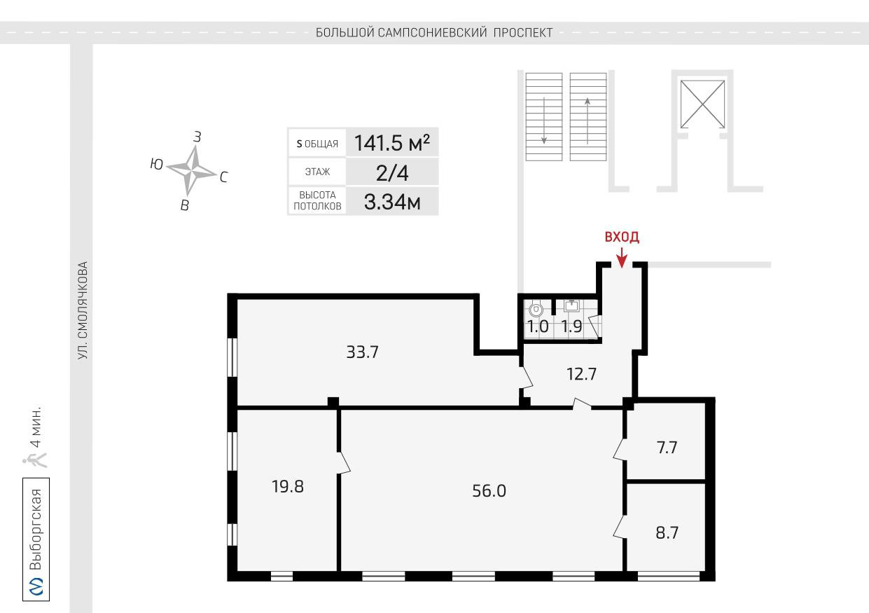 • 5 минут пешком до ст.м «Выборгская»