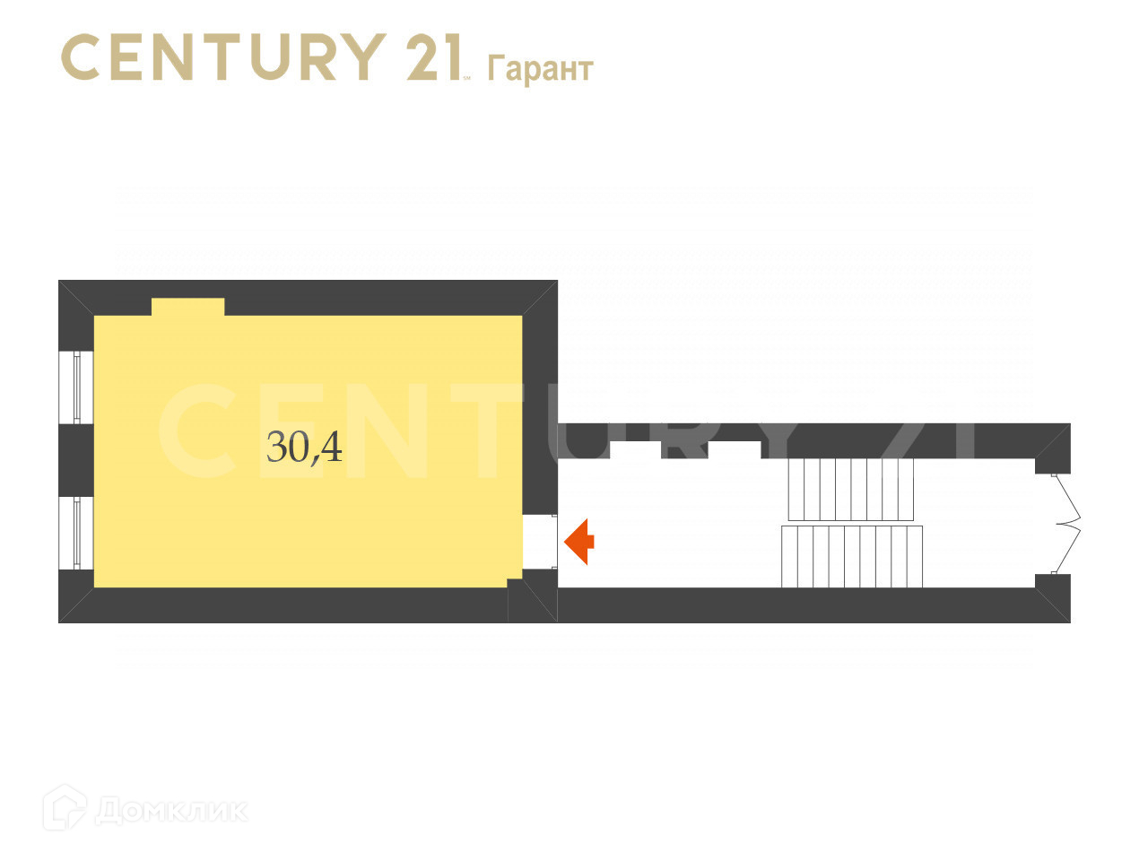 Общая площадь 30.4 м2