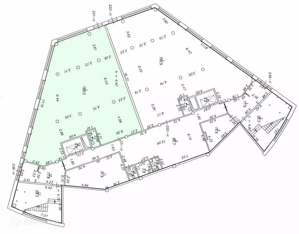 - Высота потолков: 7.3 м, 2.2 м;