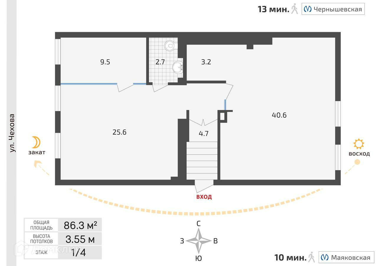 * Высота потолков - 3,55 м