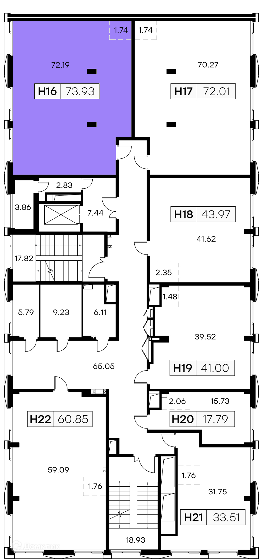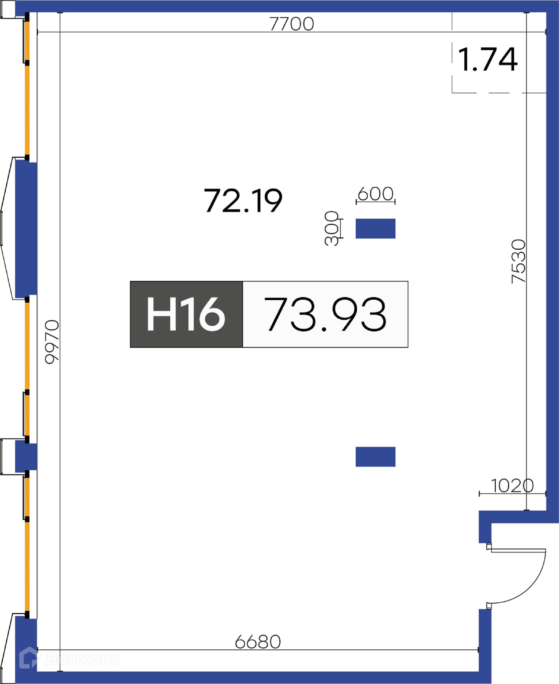 Общая площадь 73.93 м2
