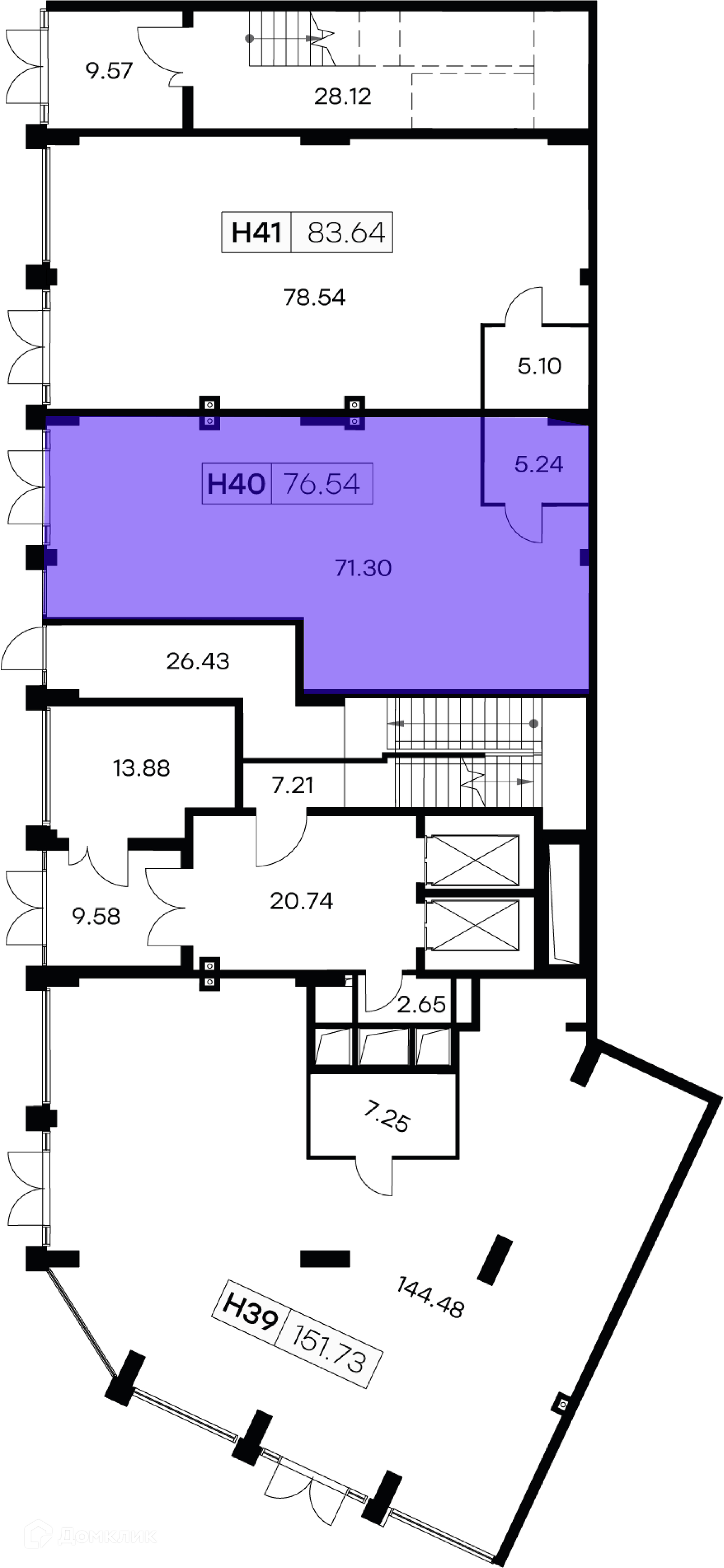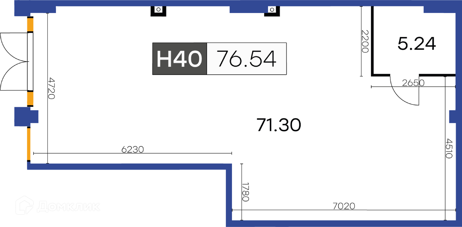 Общая площадь 76.54 м2