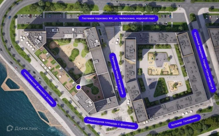 Проект находится в шаговой доступности от проектируемой станции метро «Морской фасад» и набережной Финского залива, в зоне активного автомобильного и пешеходного трафика. Удобная транспортная доступность: 5 минут пешком до проектируемой станции метро «Морской фасад», 10 минут на машине до ЗСД, 20 минут до «Невского проспекта».