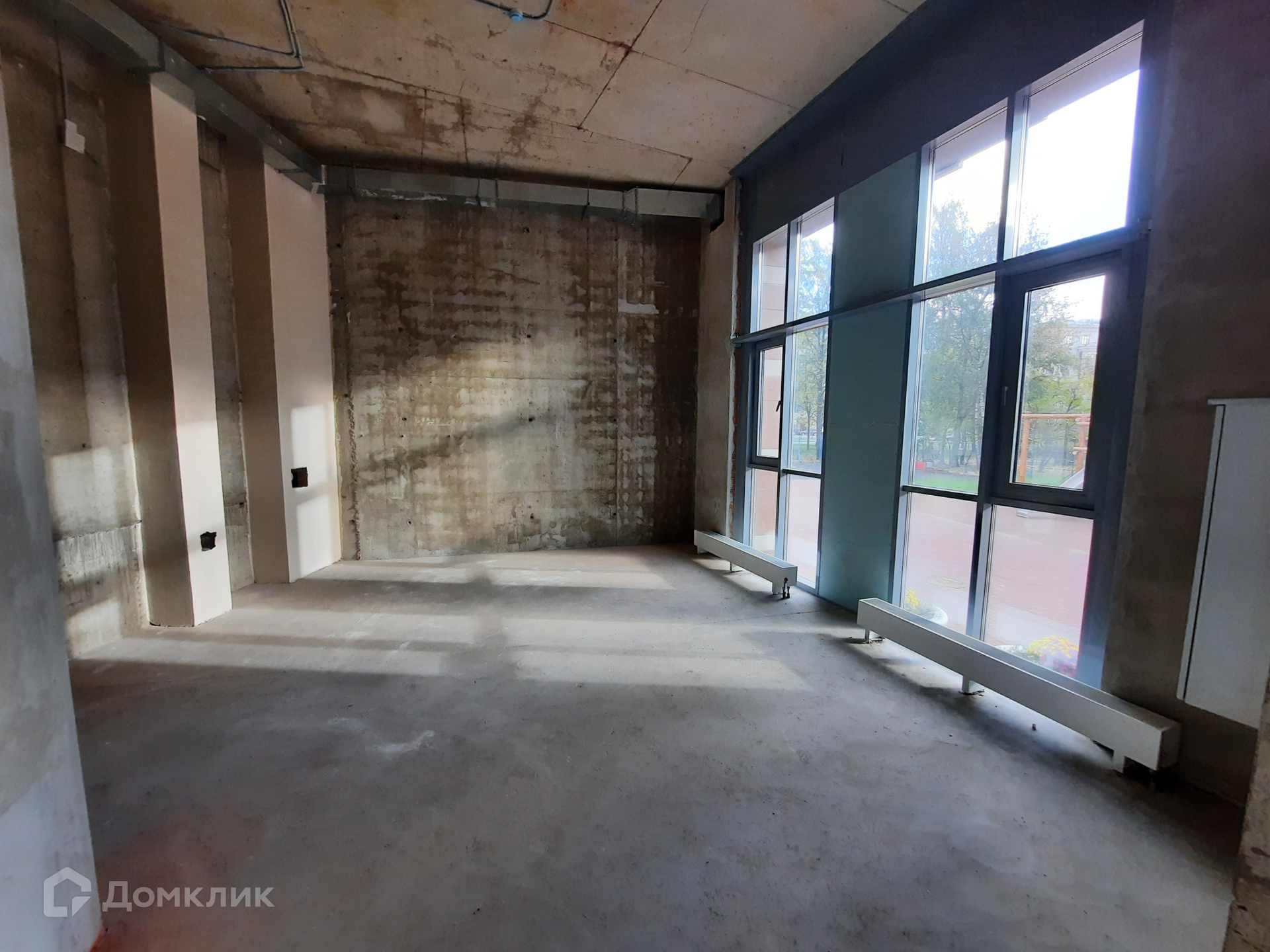 Помещение с черновой отделкой: стяжка на полу, магистральные стояки ГВС и ХВС с установкой счетчиков, горизонтальная разводка отопления, ввод электричества в помещение.