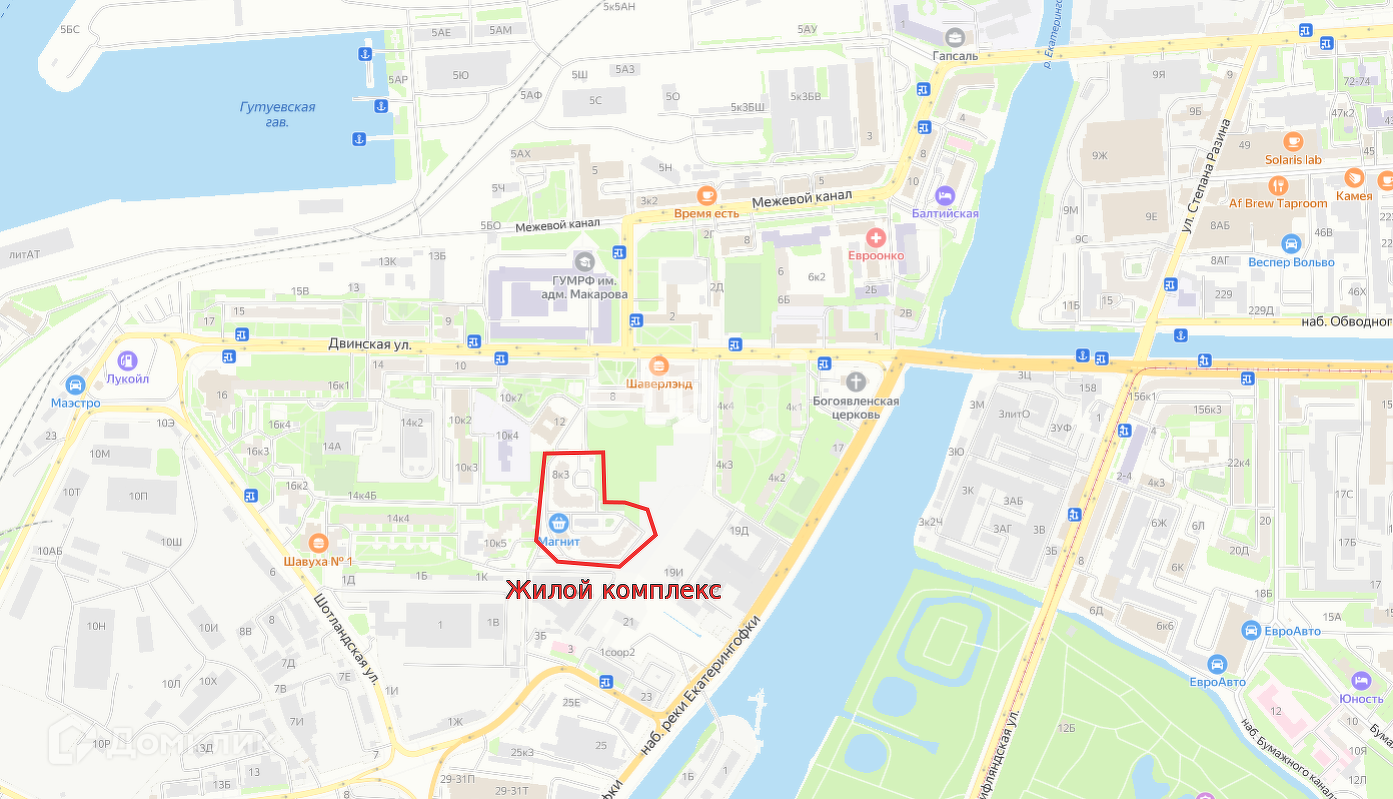 Комплекс на 1000 квартир в радиусе 500 метров проживает порядка 5300 человек.