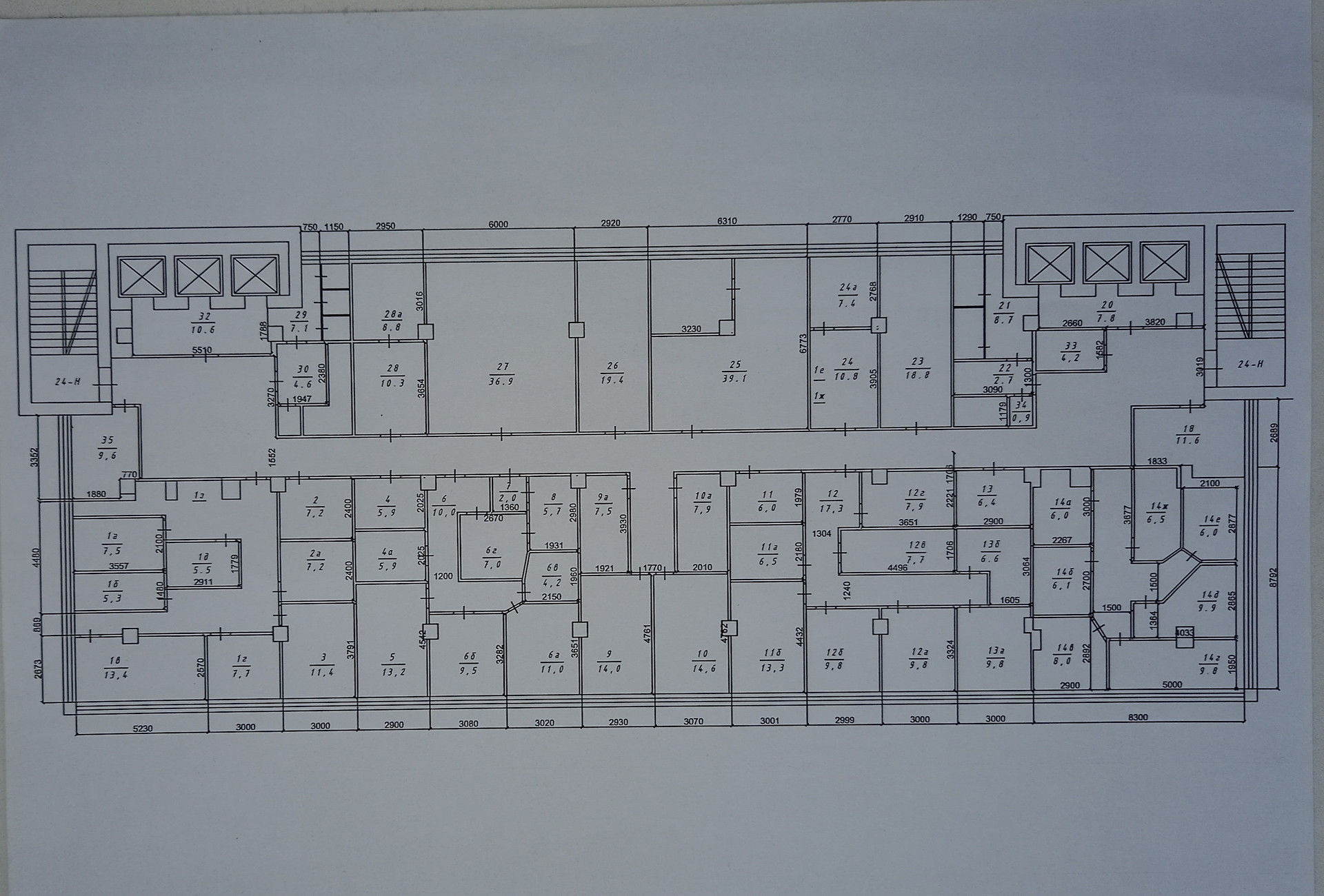 Кабинетная планировка: 45 кабинетов из которых: 39 кабинетов (площадь от 5,3 до 14,6 кв.м) и 6 представительских кабинетов с возможностью организации индивидуальных зон (площадь от 18 до 39 кв.м). Зона ресепшен общая на этаж и зона отдыха. Два блока санузлов (по три кабины). Серверная. Планировку можно менять - несущих стен нет.