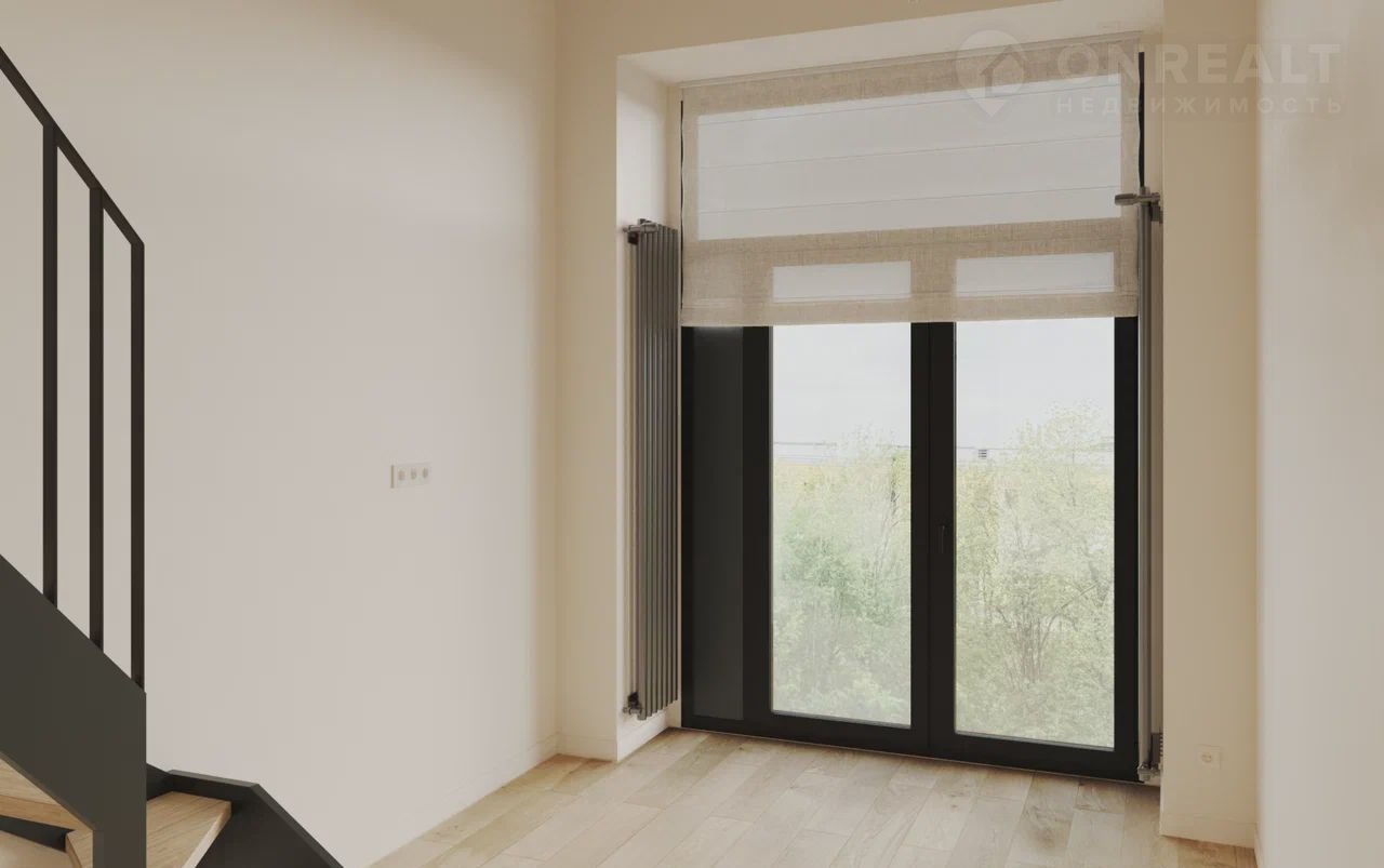 Панорамные окна и высокие потолки.