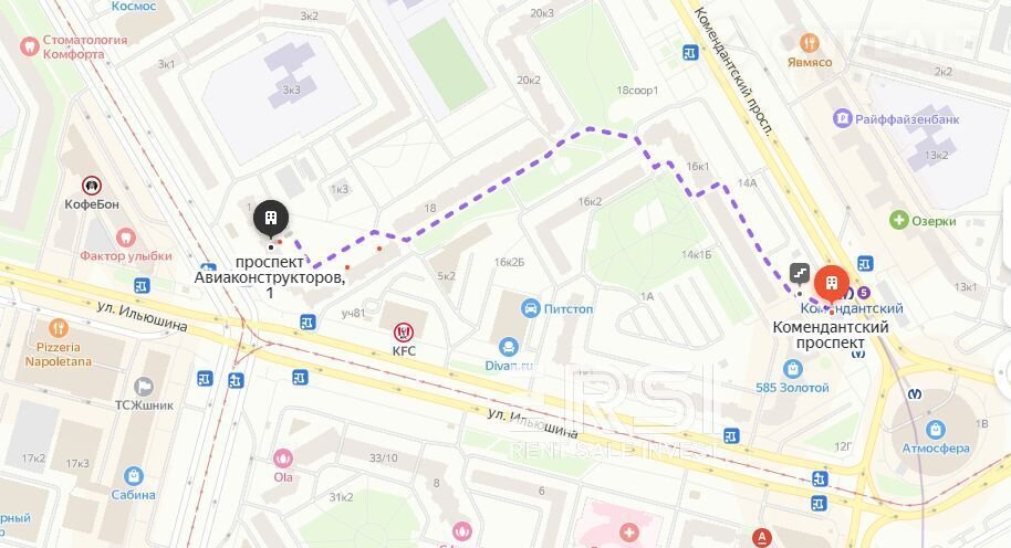 •В 8 минутах от метро Комендантский проспект;