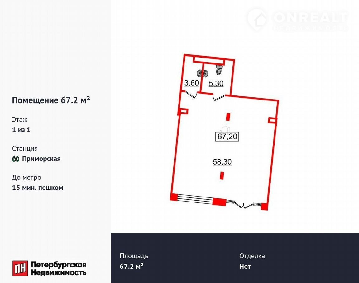 Помещение свободного назначения, 67.2 м2, на продажу в Санкт-Петербурге, Уральская улица, 25