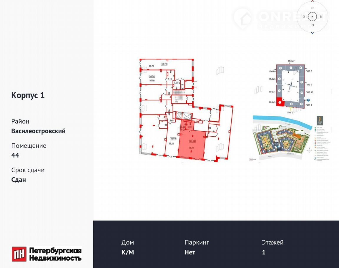 Продается помещение в ЖК Amber Club площадью 67.2 м². Помещение расположено по адресу Санкт-Петербург, Уральская улица рядом с метро Приморская. Расстояние до метро 15 Мин.пешком. Корпус сдан. Без отделки.