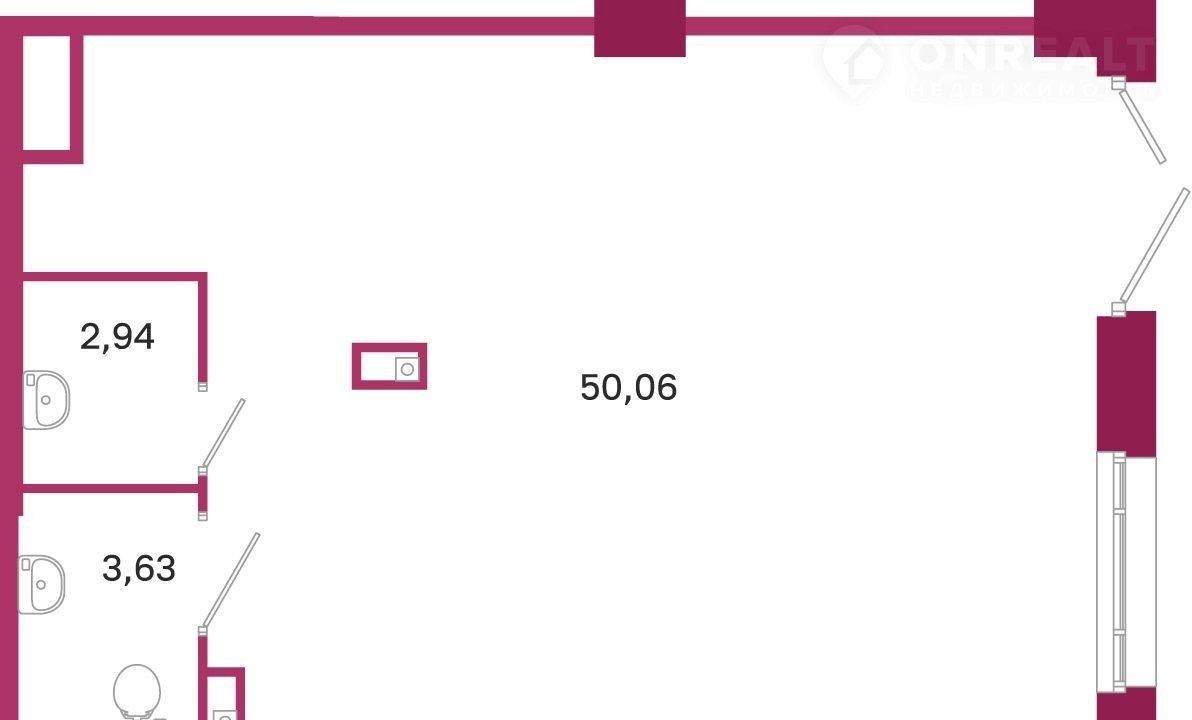 Общая площадь 56.63 м2