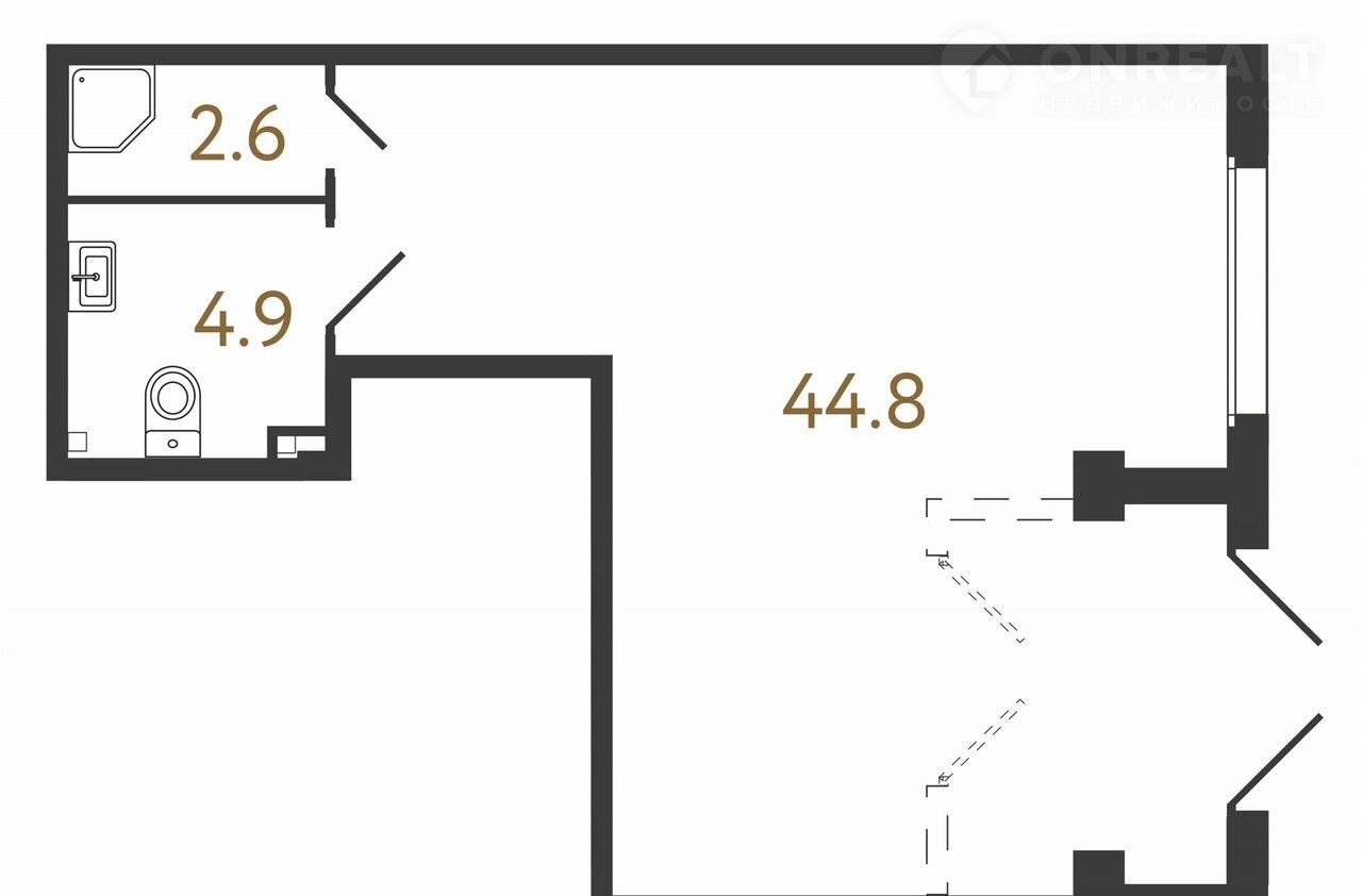 Общая площадь 52.3 м2