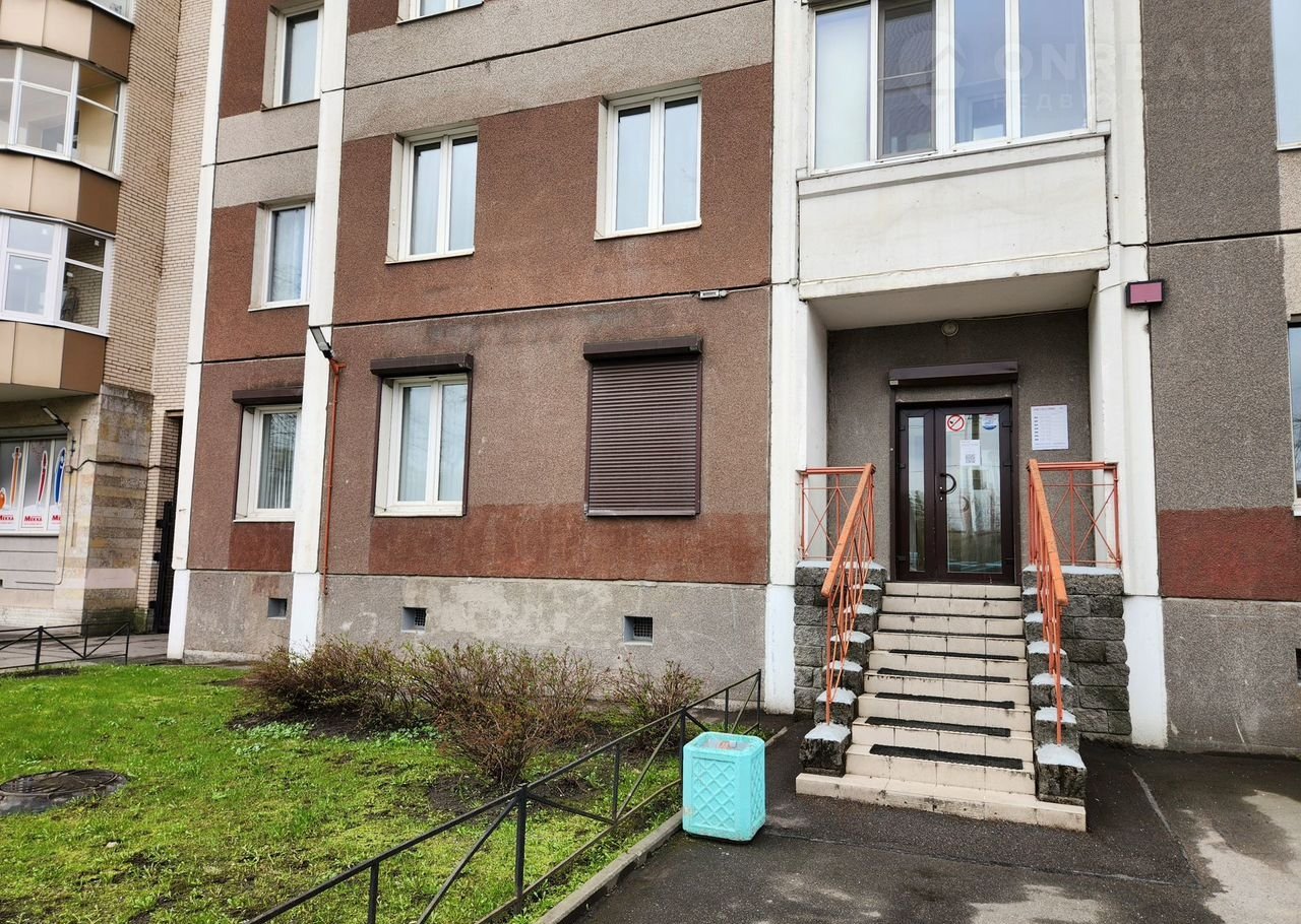 Вход с Проспекта Ветеранов и со двора. Видовые окна с антивандальными ставнями выходят на две стороны. Весь первый этаж дома коммерческий, свободных площадей нет.