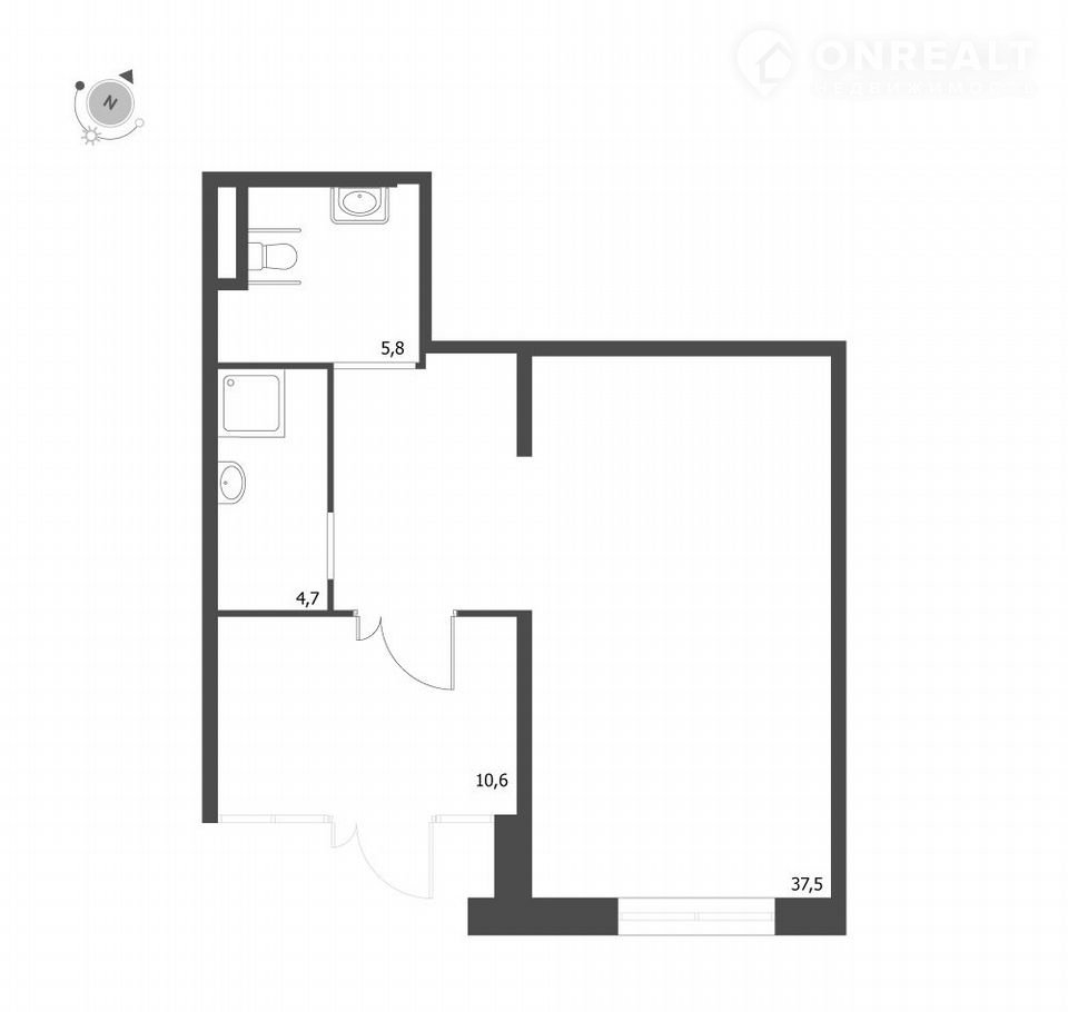 Общая площадь 58.6 м2