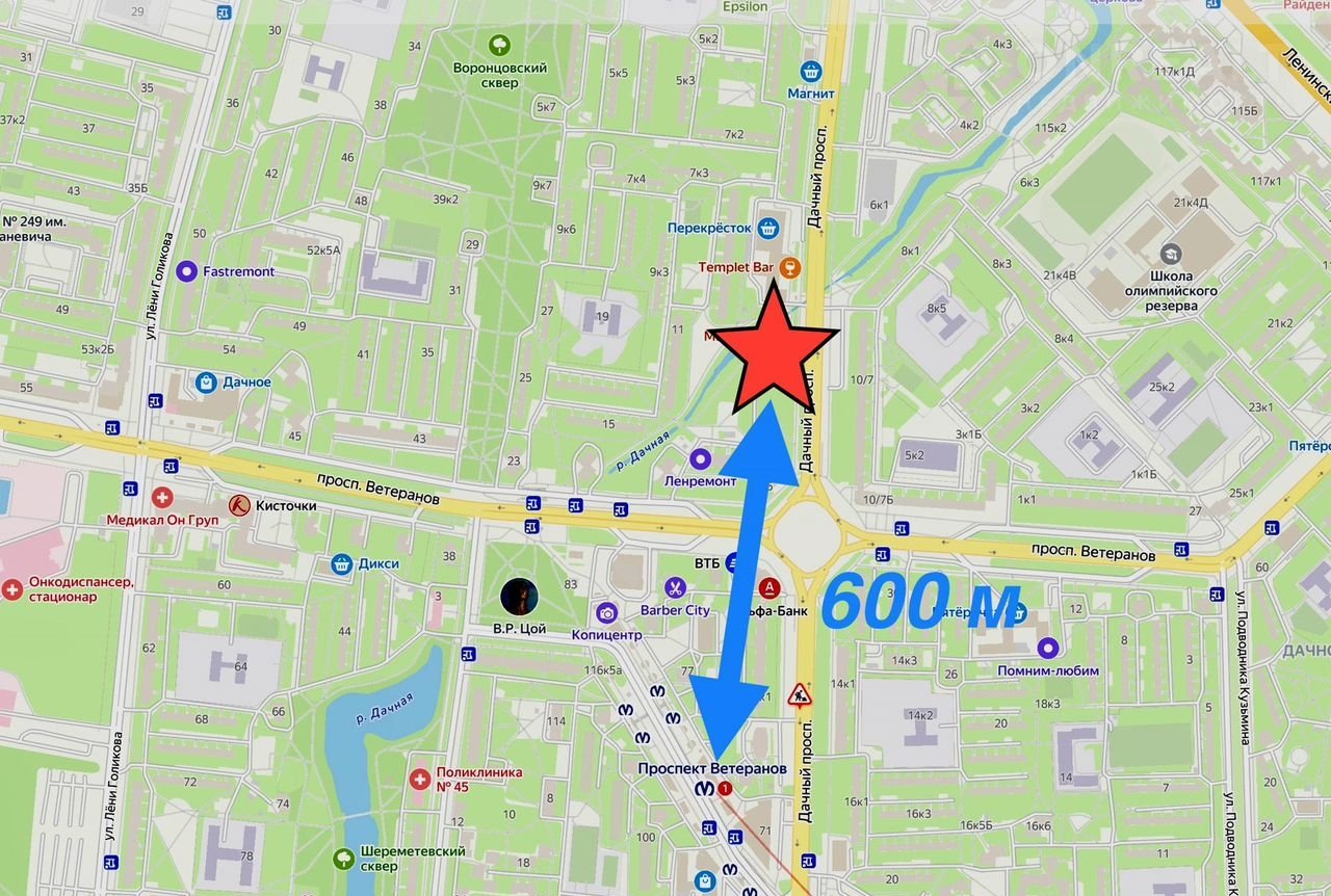 — Пeшaя доступность: всего 5 минут от метро «Проспект Ветеранов»