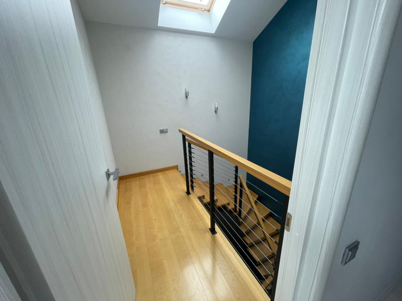 Таунхаус состоит из 4 уровней. На 1 этаже расположены: гараж (он же спортзал), гардеробная, сауна, душевая, санузел. На 2 этаже находится кухня, санузел, гостинная с камином. На 3 этаже расположились жилые комнаты: спальня с гардеробной комнатой, детская комната, гостевая комната и санузел. В мансарде оборудован кабинет.
