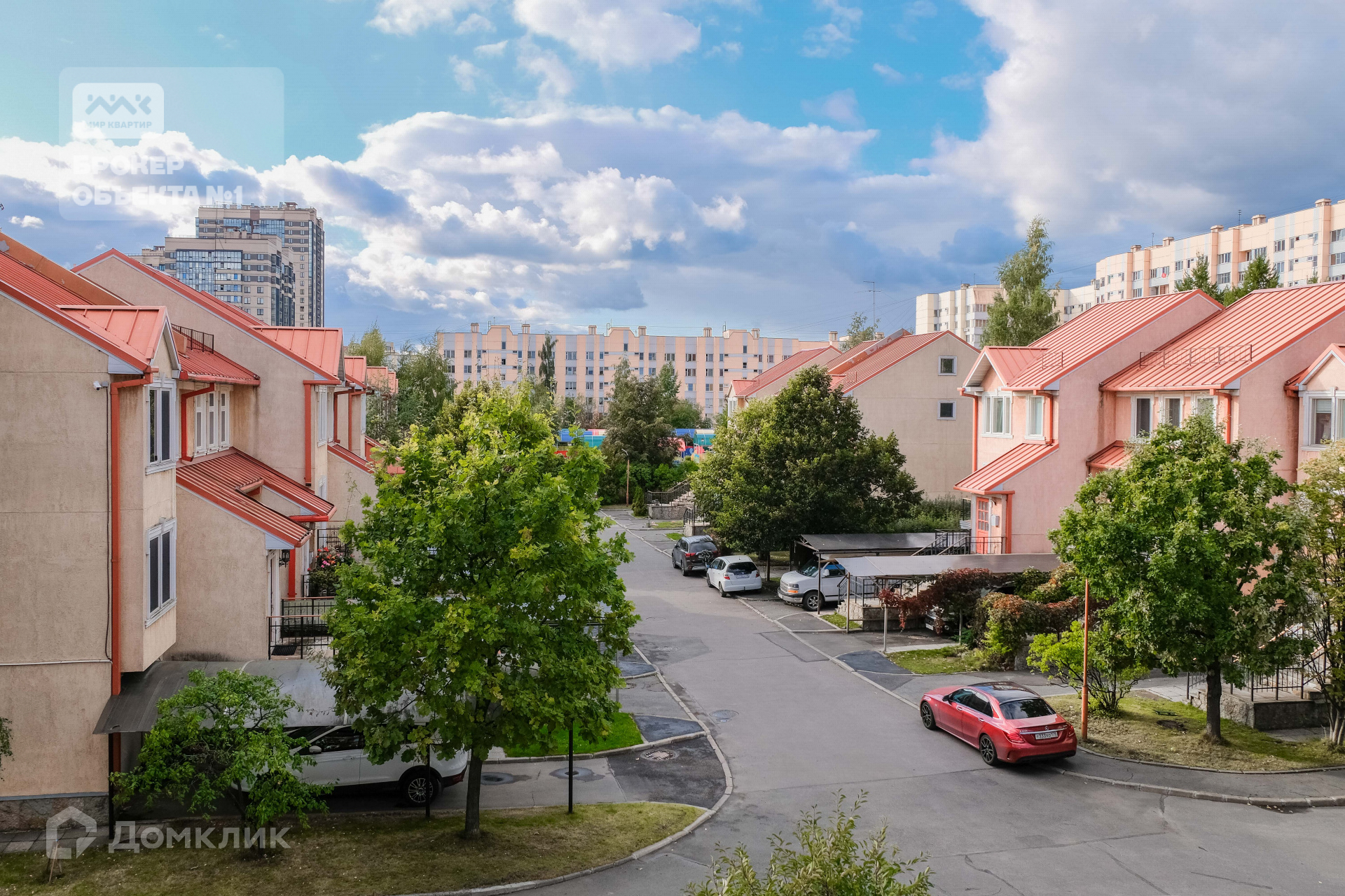 Объект находится  в коттеджном комплексе  «Дубравы»(микрорайон Коломяги), с закрытой , охраняемой, ухоженной территорией с детскими и баскетбольной площадкой.