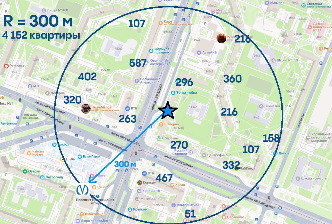 — До ст.метро «Проспект Просвещения» - 300 м