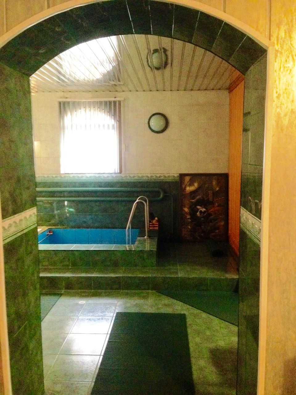На первом банном этаже коттеджа: сауна с возможностью турецкой бани, душевая кабина, тренажерный зал, камин. Есть выход в сад.