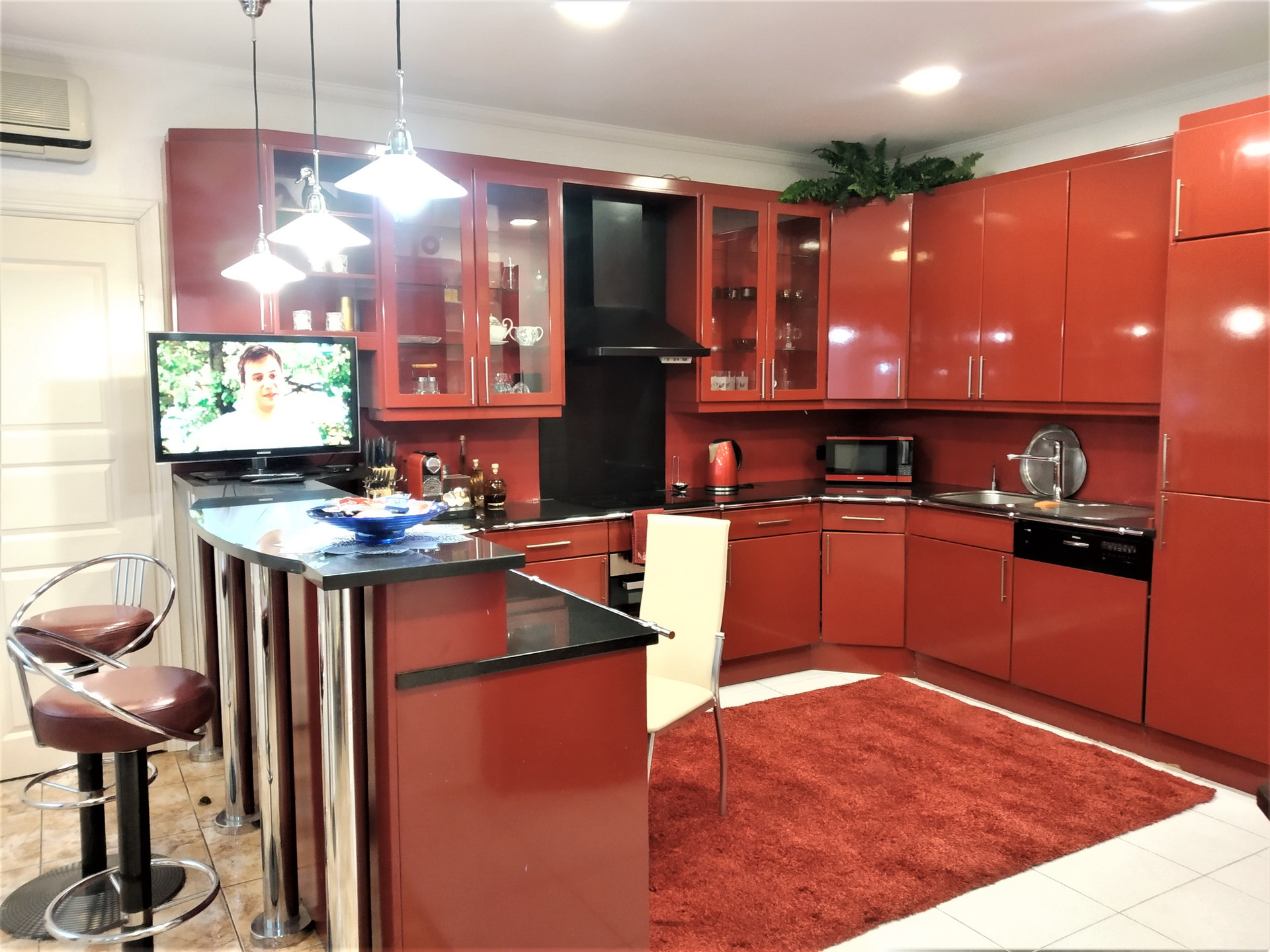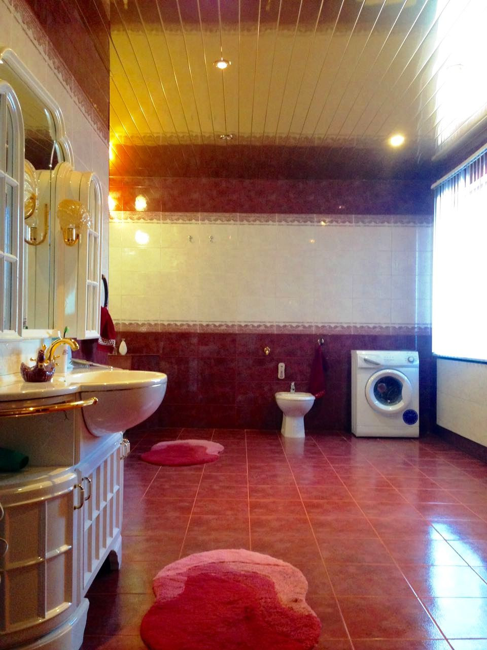 В доме имеется три санузла, по одному на каждом этаже, две стиральные машины, посудомоечная машина, два холодильника, две морозильные камеры, электроплита, духовка, вытяжка, СВЧ-печь.