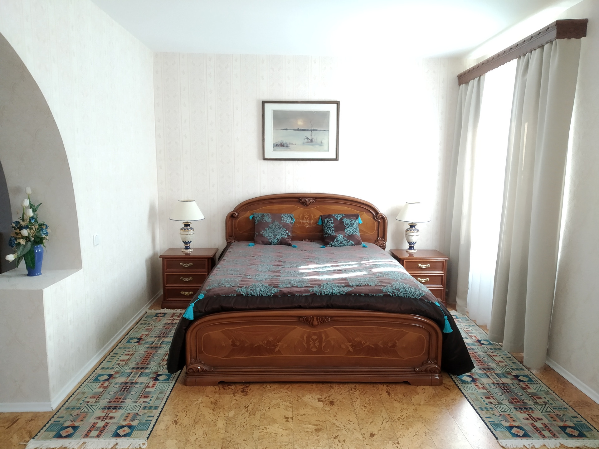 Третий этаж приватный - ванная, три спальные комнаты. Экологичный пол из пробки.
