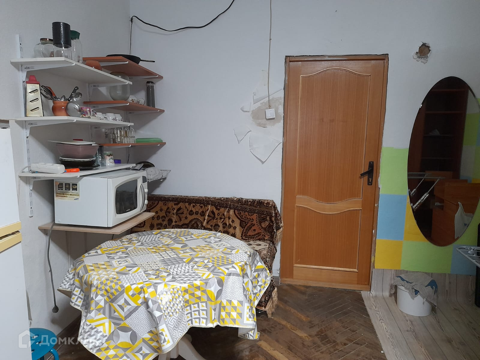 Жилая площадь 21 кв.м, кухня 10 кв.м, в комнате два спальных места, типовой ремонт, комнаты изолированные. Квартира малонаселённая, проживает ещё одна семейная пара с детьми.  Есть вся необходимая мебель и бытовая техника: стиральная машина, холодильник, микроволновая печь, интернет. Раздельных санузлов 1, есть ванна.