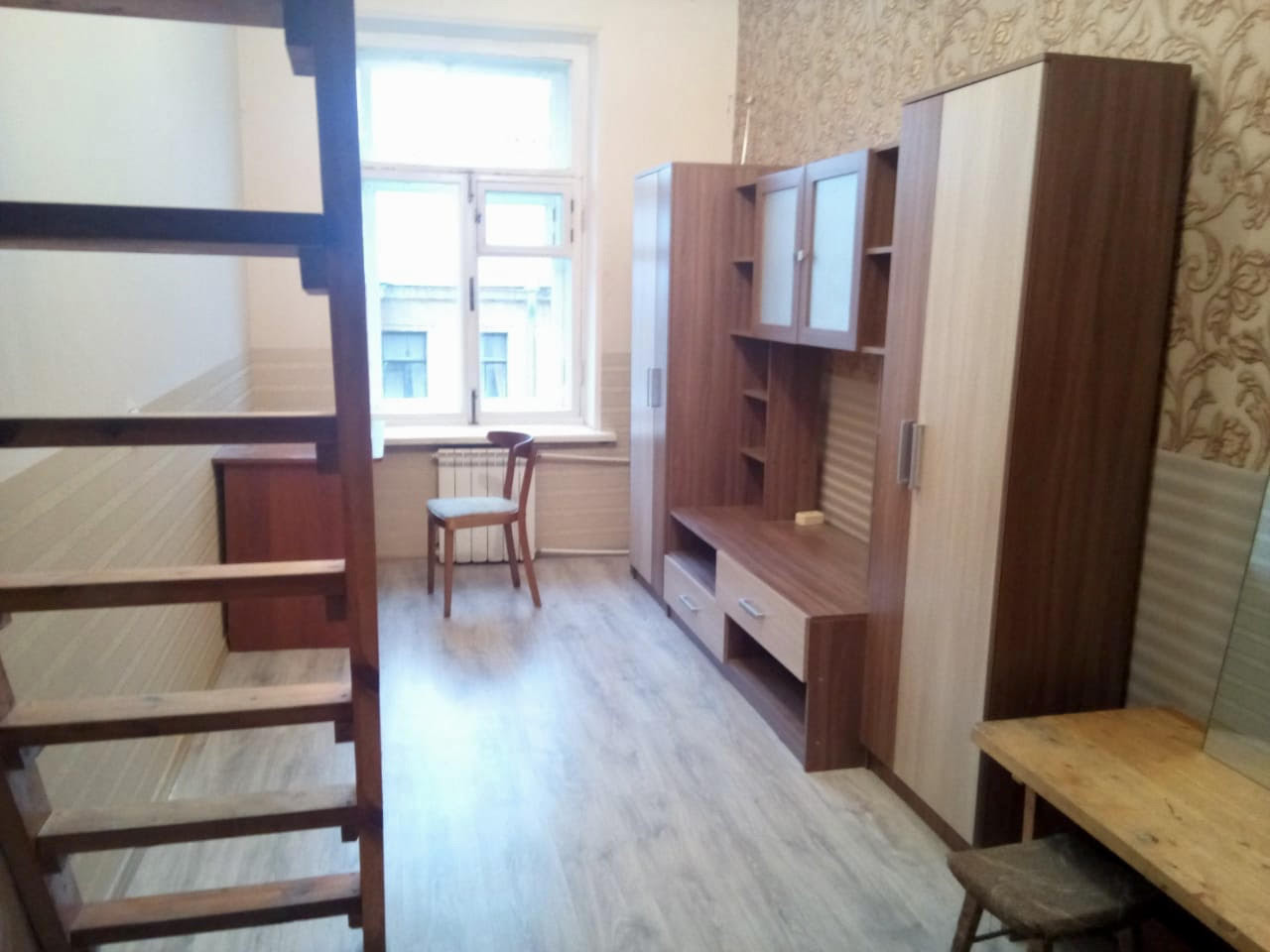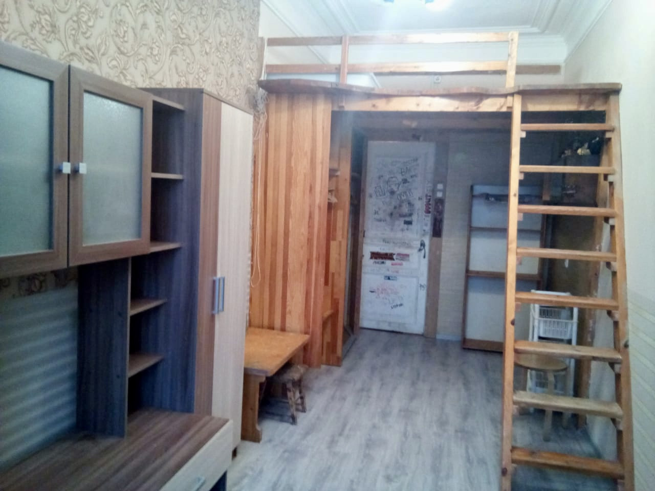 Комната 15,4м, перед входом в комнату имеется ниша, 2,6м, отлично подходящая под кладовку и хранение вещей. Пространство удобно и оригинально зонировано: мини-кухня, рабочая зона и, вишенка на торте, оборудованное, просторное спальное место на втором этаже