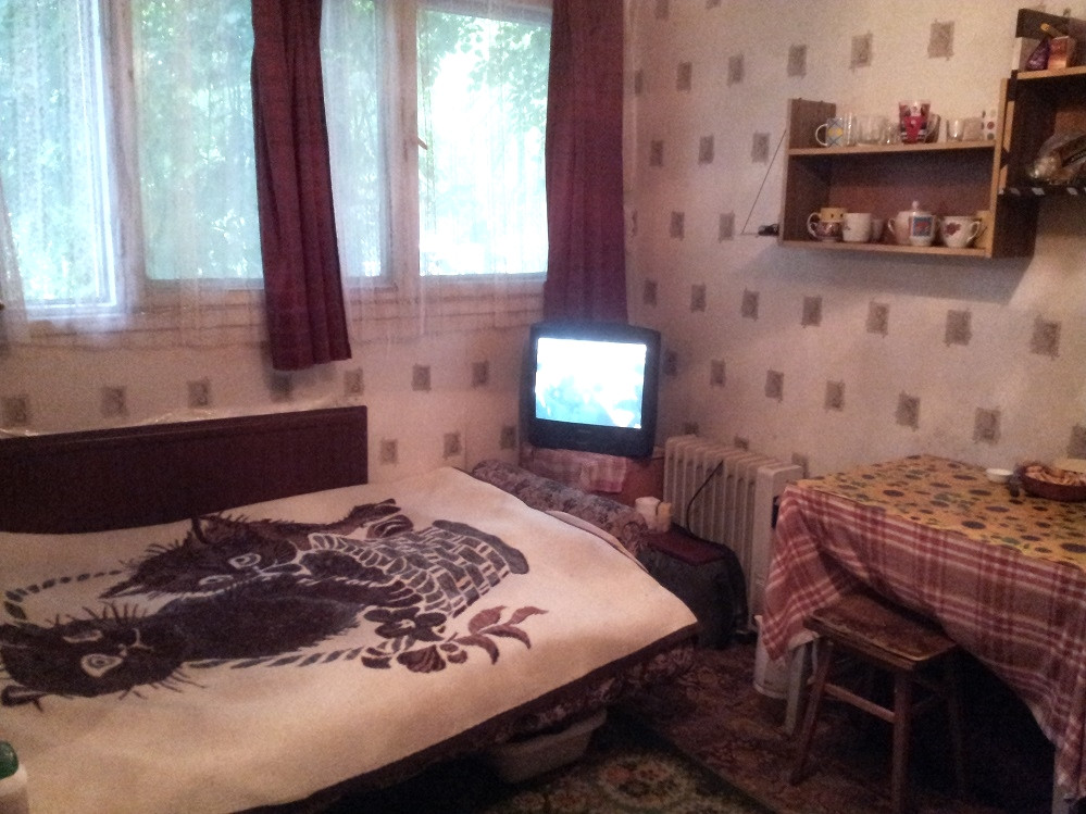 Комната: диван-книжка, большой шкаф для одежды,