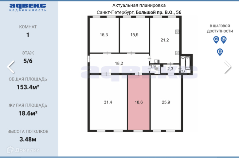 Комната, 92 м2, в аренду на длительный срок в Санкт-Петербурге, Большой проспект Васильевского острова, 56