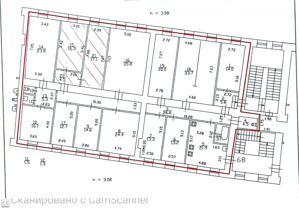 Высота потолков 3.08 м