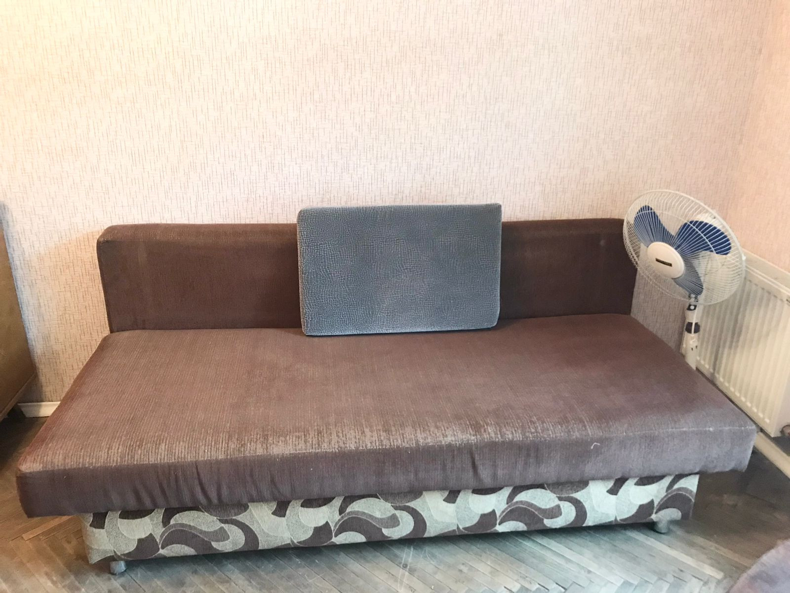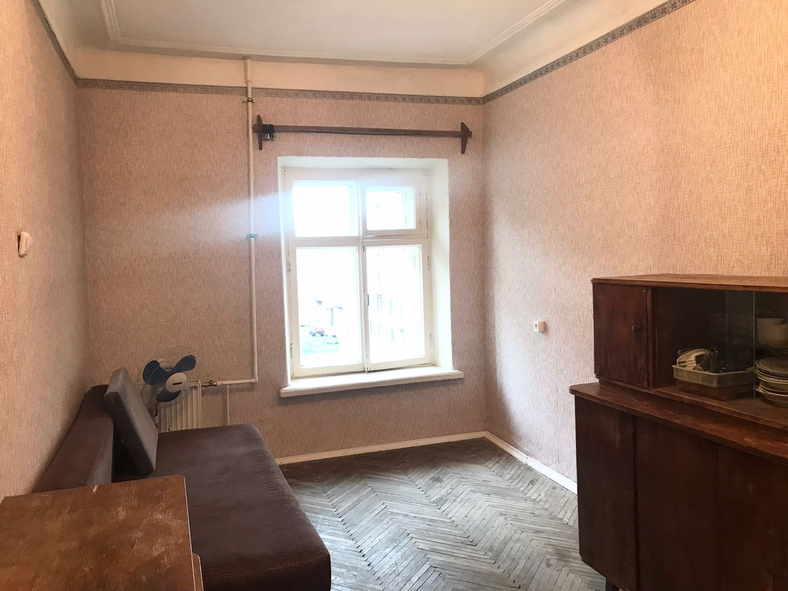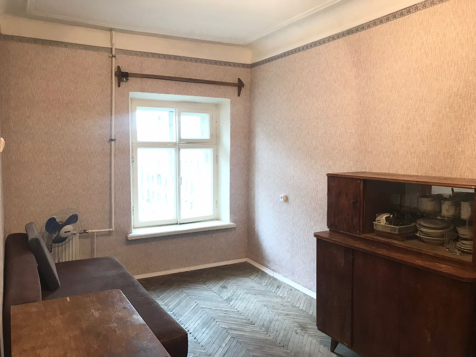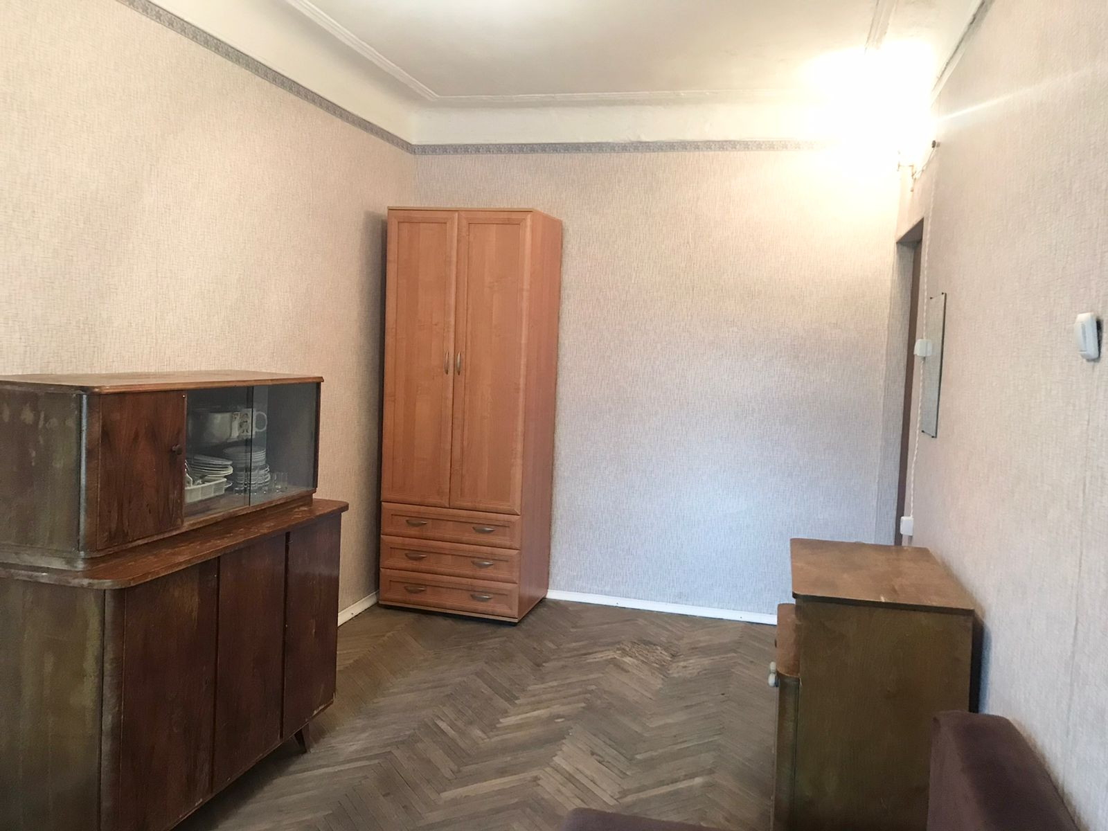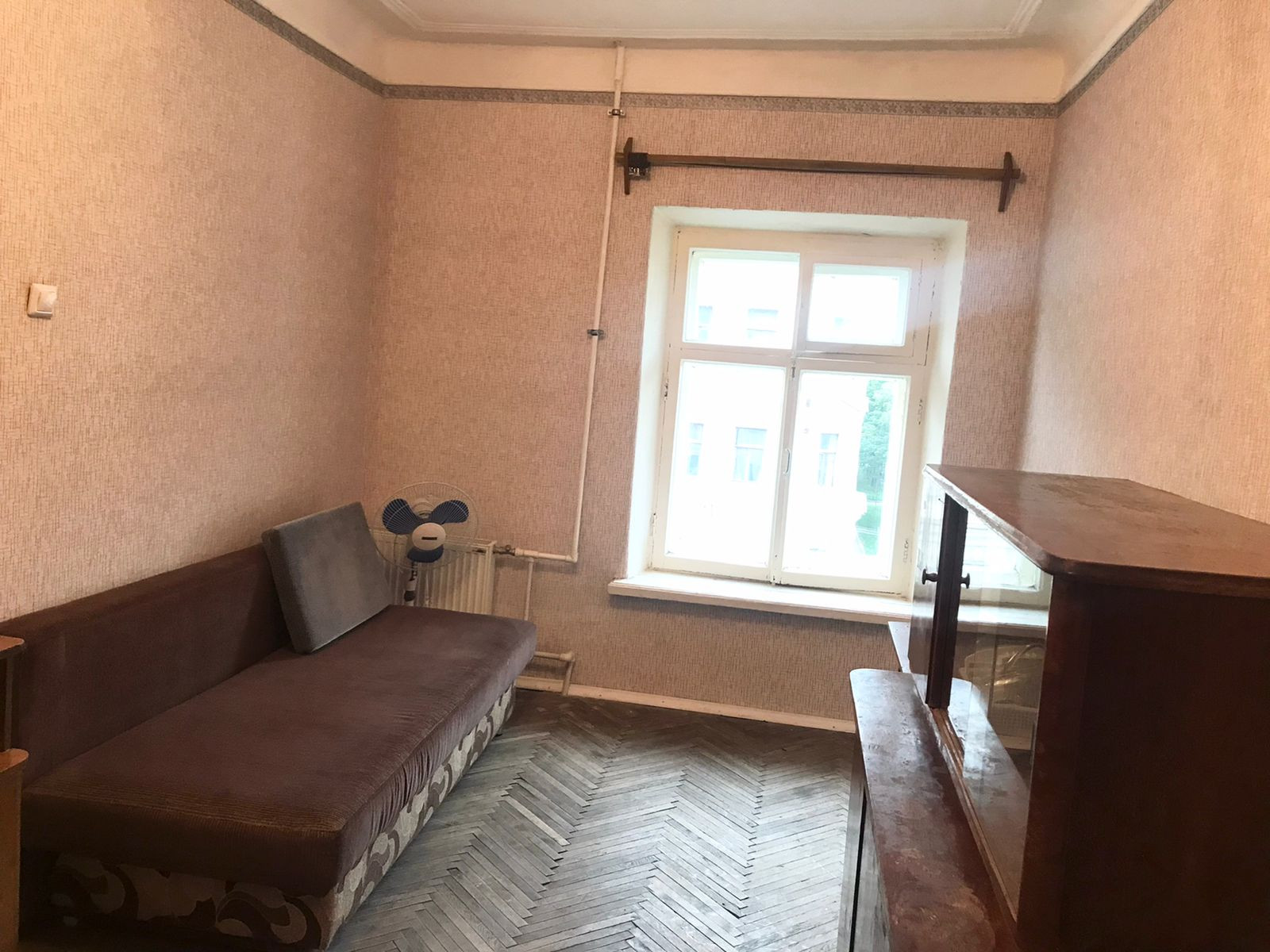 В комнате есть места для хранения одежды, холодильник (на фото его еще нет), диван раскладывается. Сделан свежий косметический ремонт в комнате.