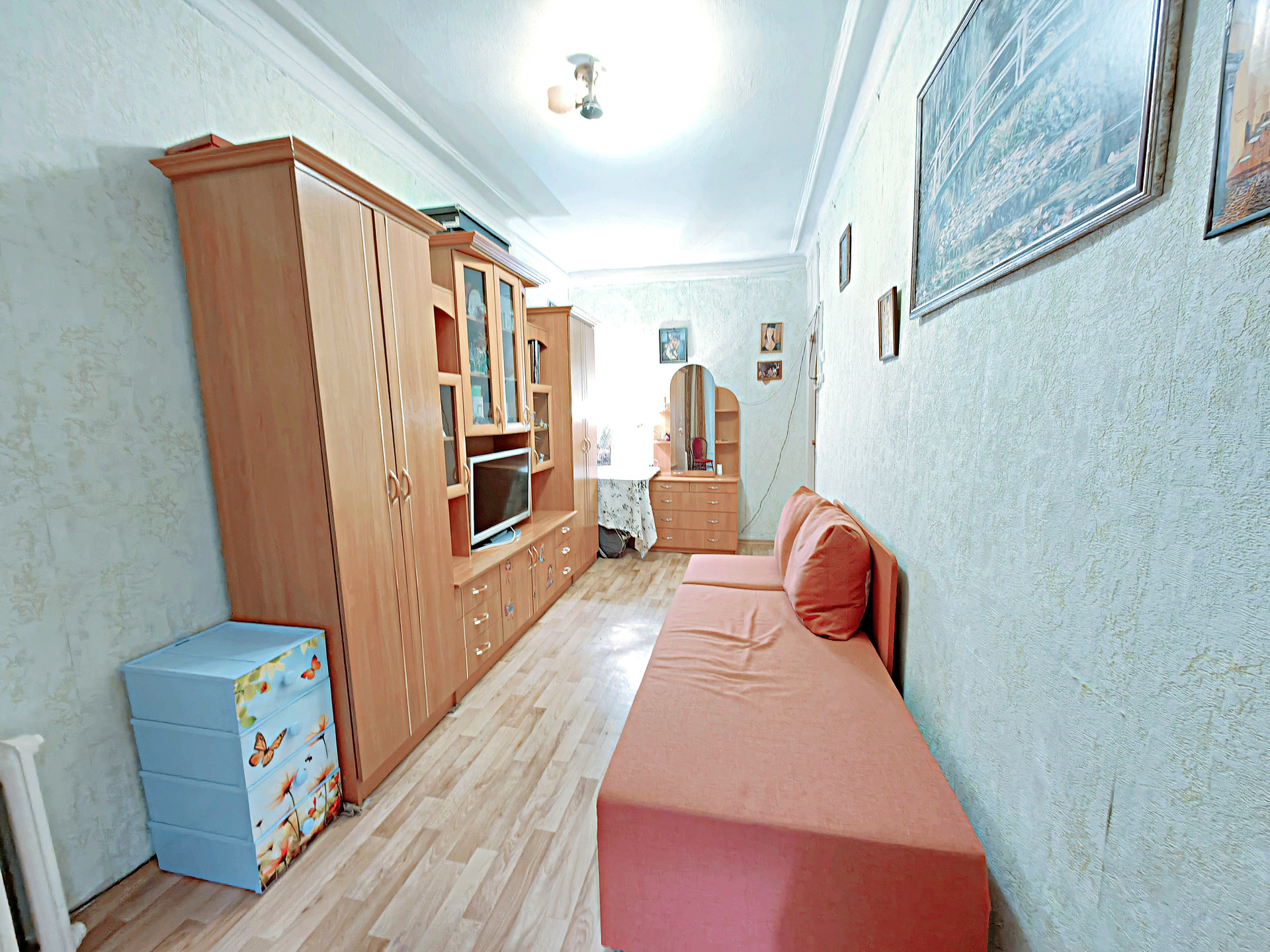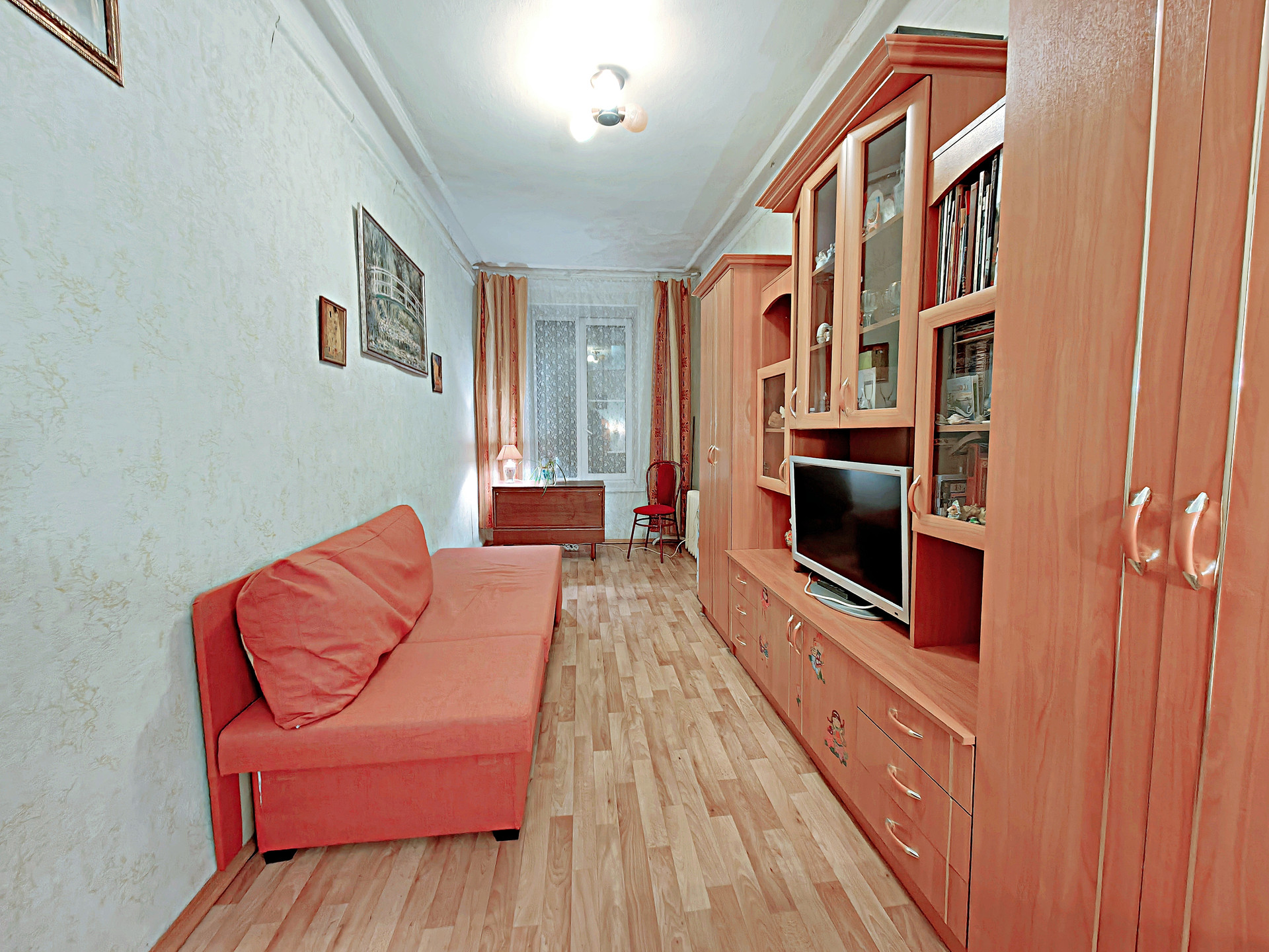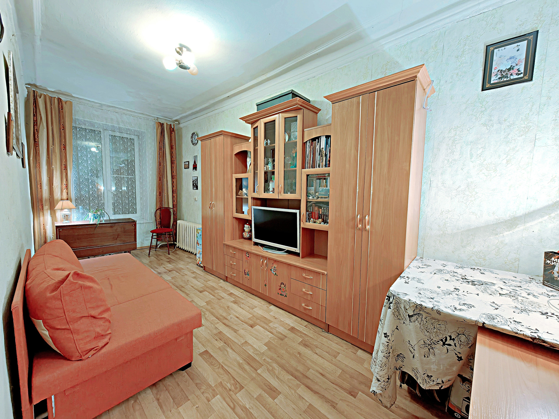 -Тихая, малонаселённая квартира. Хорошее состояние, раскладной диван, мебельный гарнитур, стол+стулья, TV, комната очень тёплая, закрывается на ключ.