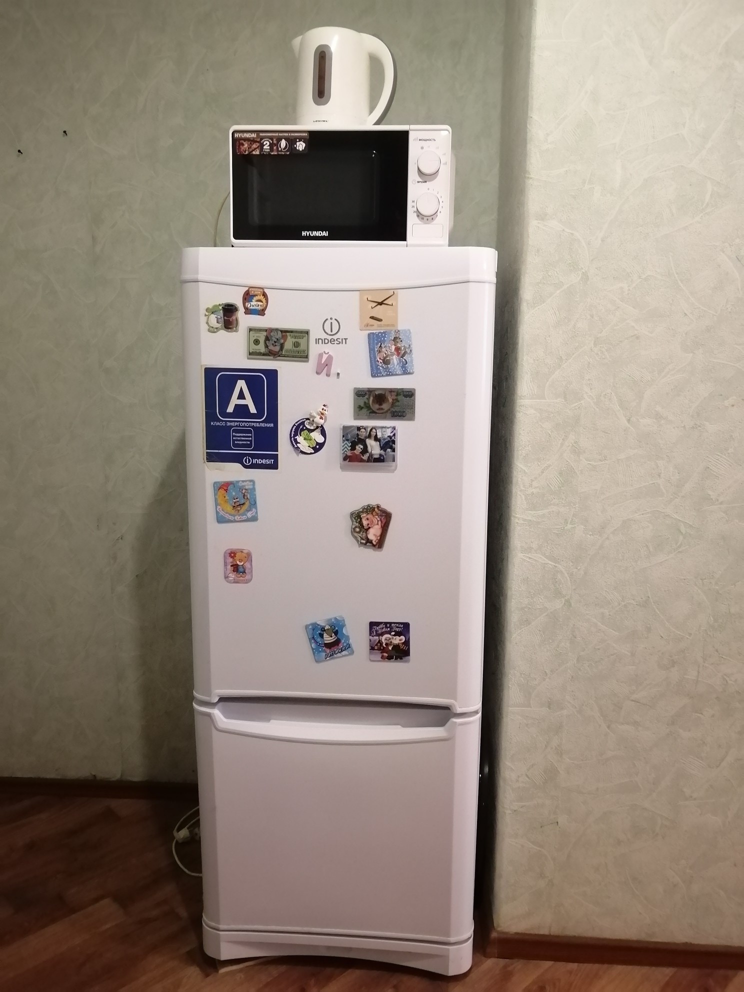 Есть все для проживания: чайник, холодильник, стиральная машина, микроволновка, мебель, телик, кухонная посуда.