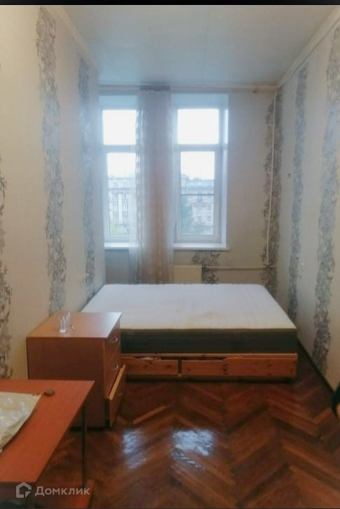 КОМНАТА просторная и светлая. Высокий потолок, окно (стеклопакет) с широким подоконником выходит на улицу Введенская, вид на Пушкарский сквер. Будущему жильцу предоставляется мебель: двуспальная кровать с матрасом ИКЕА, гардероб, прикроватная тумба.