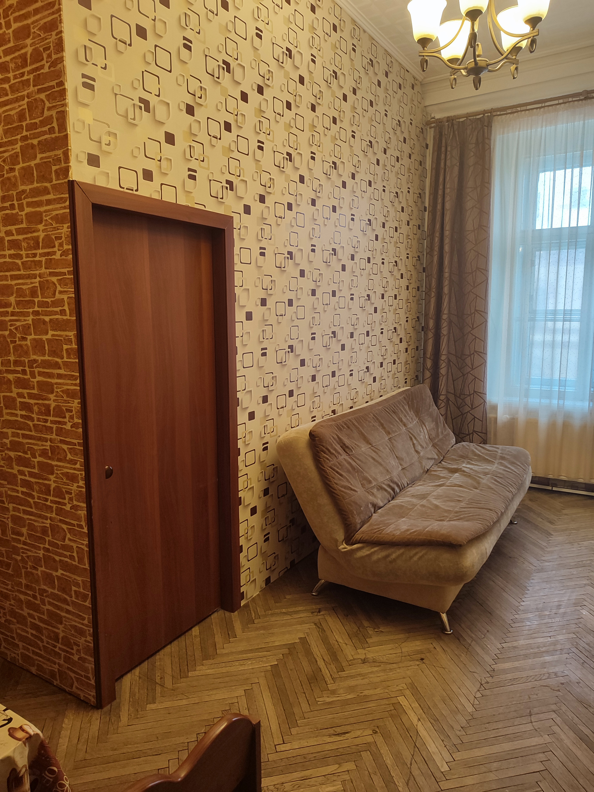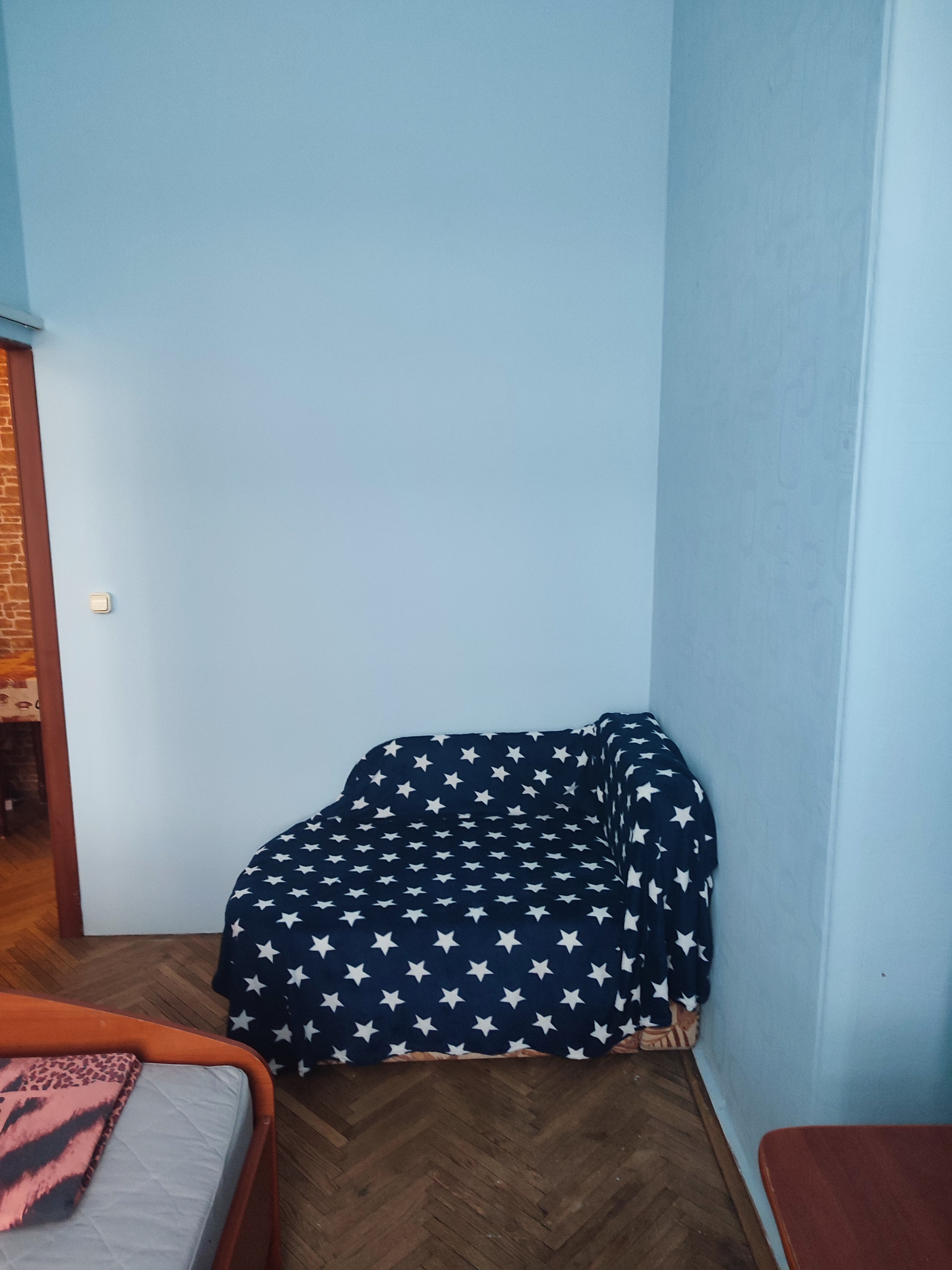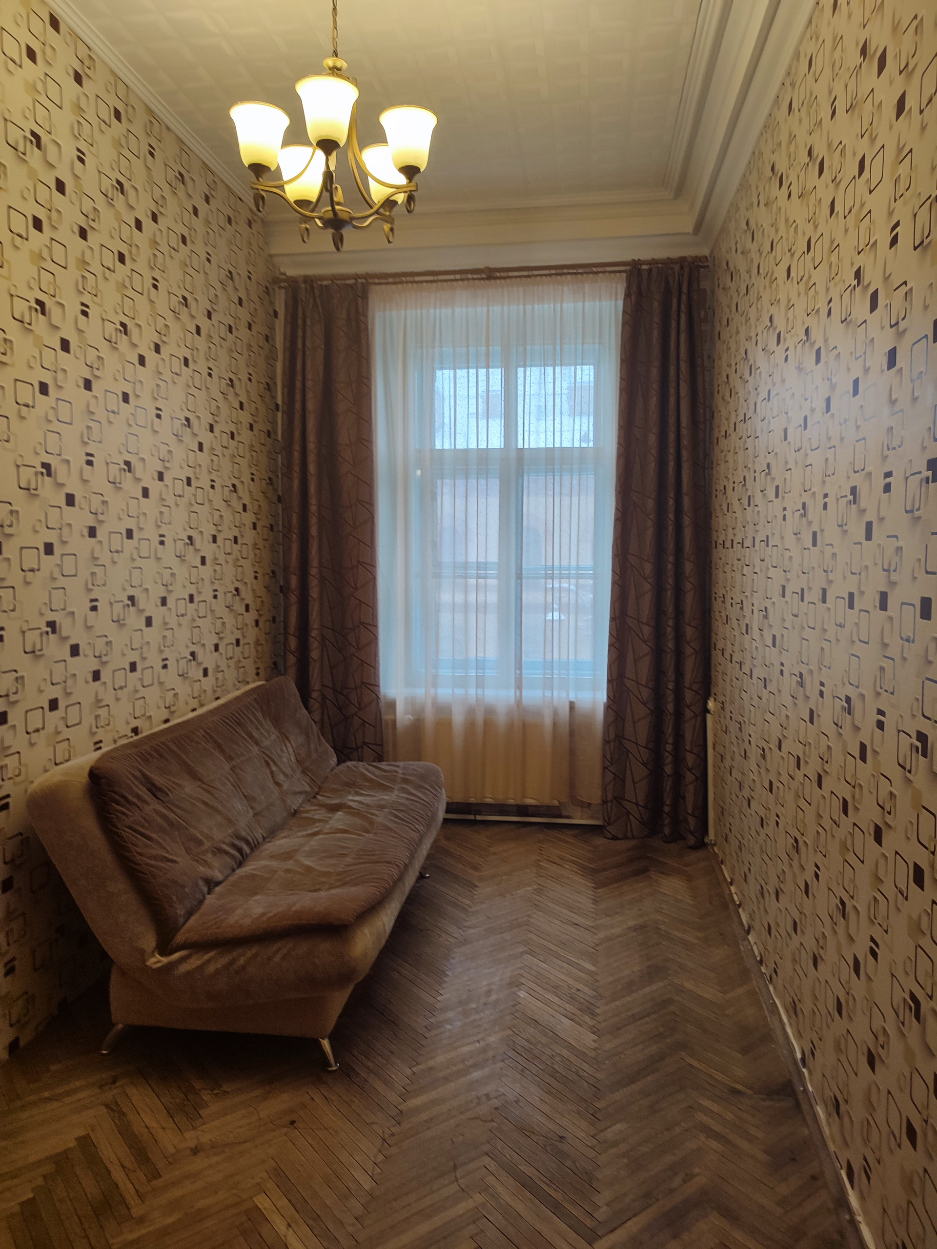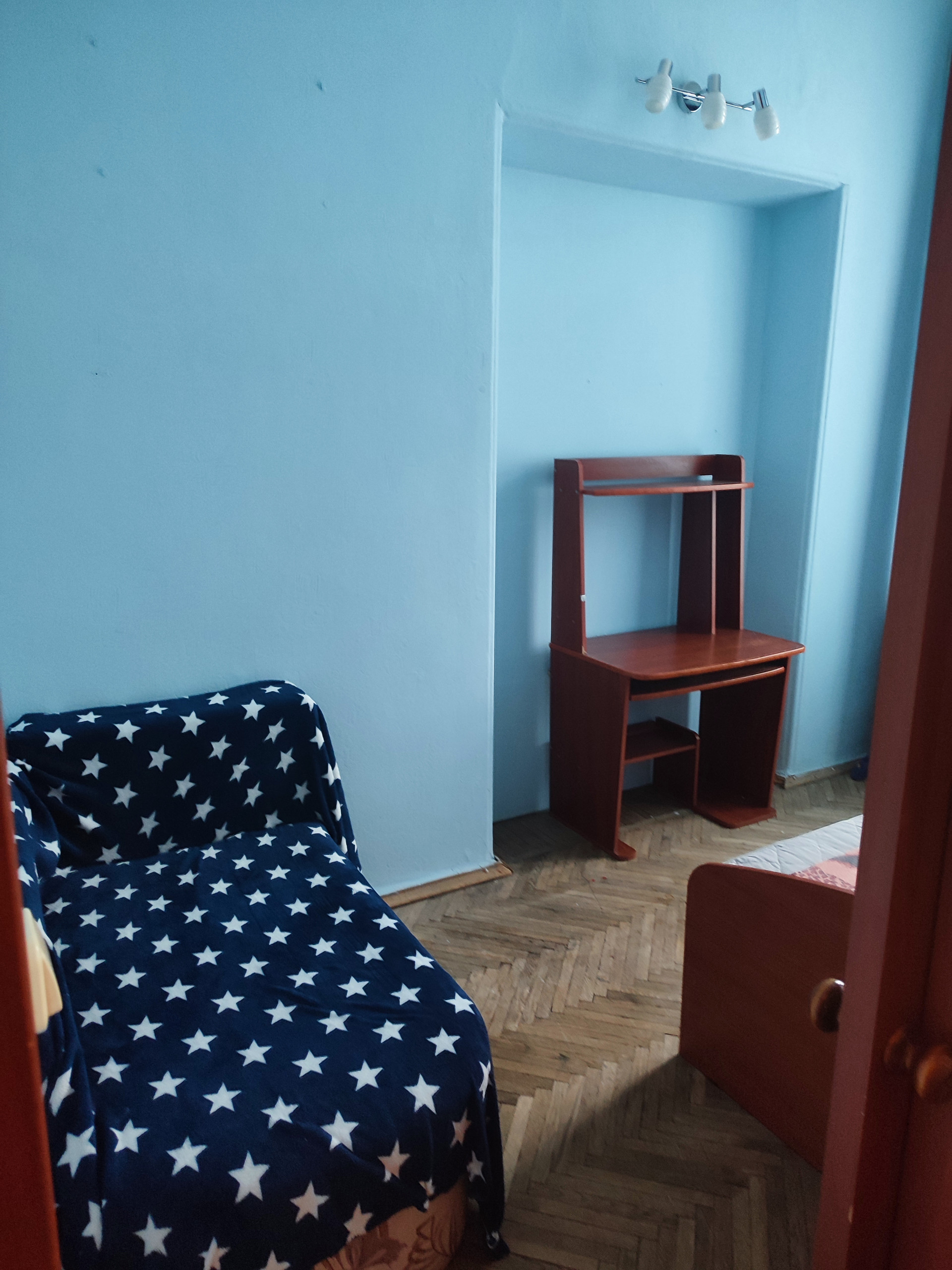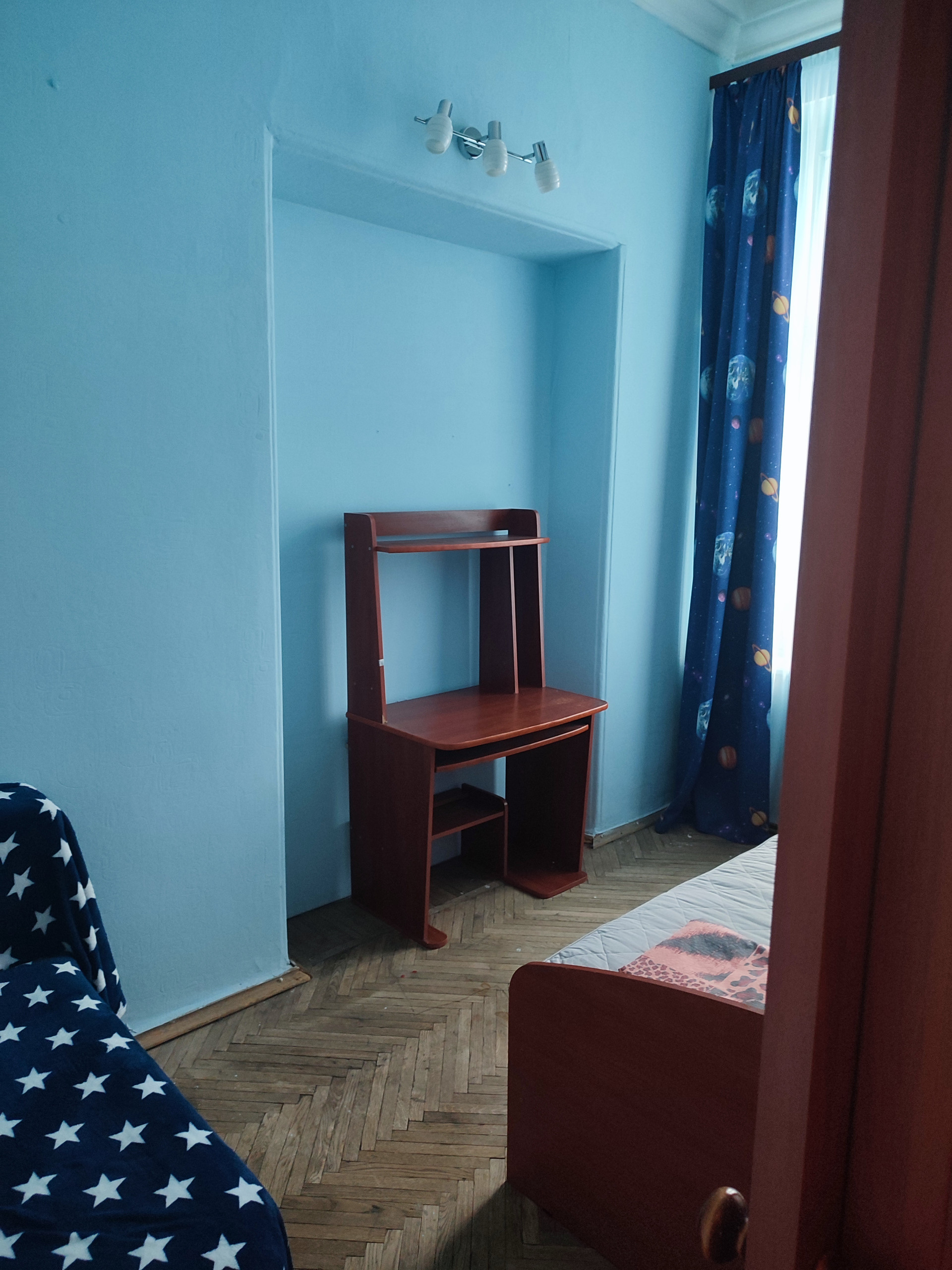 Комната после косметического ремонта. Разделена на две небольшие комнаты.