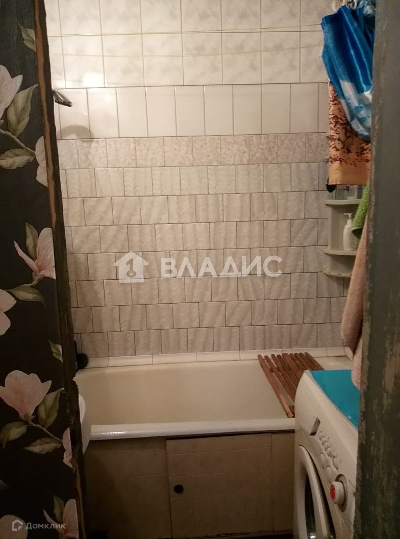 Раздельный санузел с ванной и стиральной машиной.