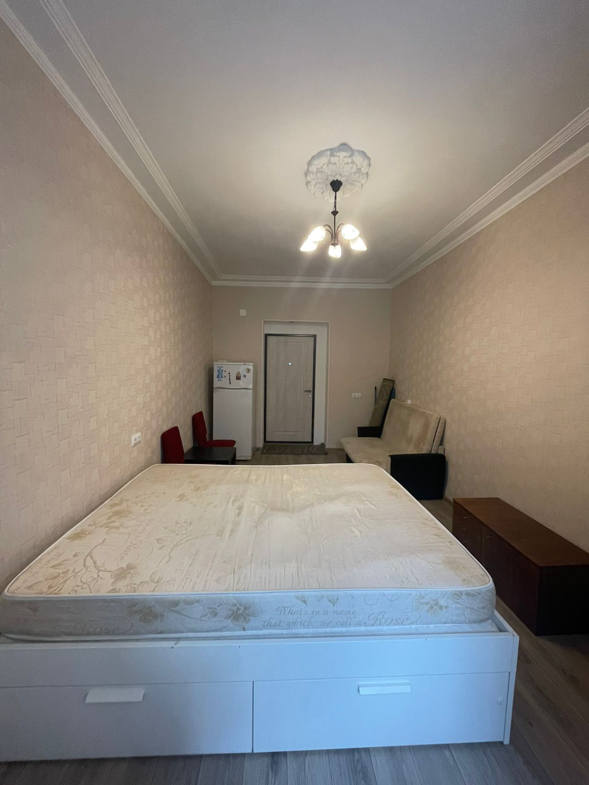 В комнате стоит большой шкаф,2-х спальная кровать с ящиками,холодильник,стиральная машина,раскладной диван,небольшой столик.Проведён интернет и кабель для телевизора.Если нет своего телевизора,привезём.Сдаю ОДНОМУ ЧЕЛОВЕКУ!!!Без домашних животных, без детей.
