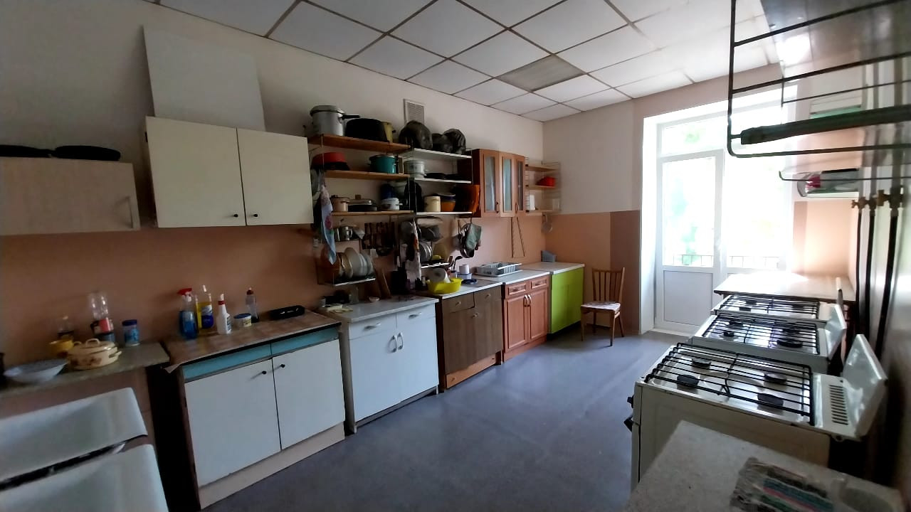 Комната зонирована на две части: спальная зона и кухня (установлен кухонный гарнитур с мойкой). Есть все необходимое для вашего комфортного проживания: диван, микроволновка, холодильник, стол, стулья, кресла, шкафы,тарелки,чашки, одеяло, подушки... Места общего пользования в хорошем состоянии. 3 кабинки туалета, душевая кабина, несколько умывальников, своя стиральная машинка, место на кухне, 3 газовые плиты. Соседей не видно и не слышно!