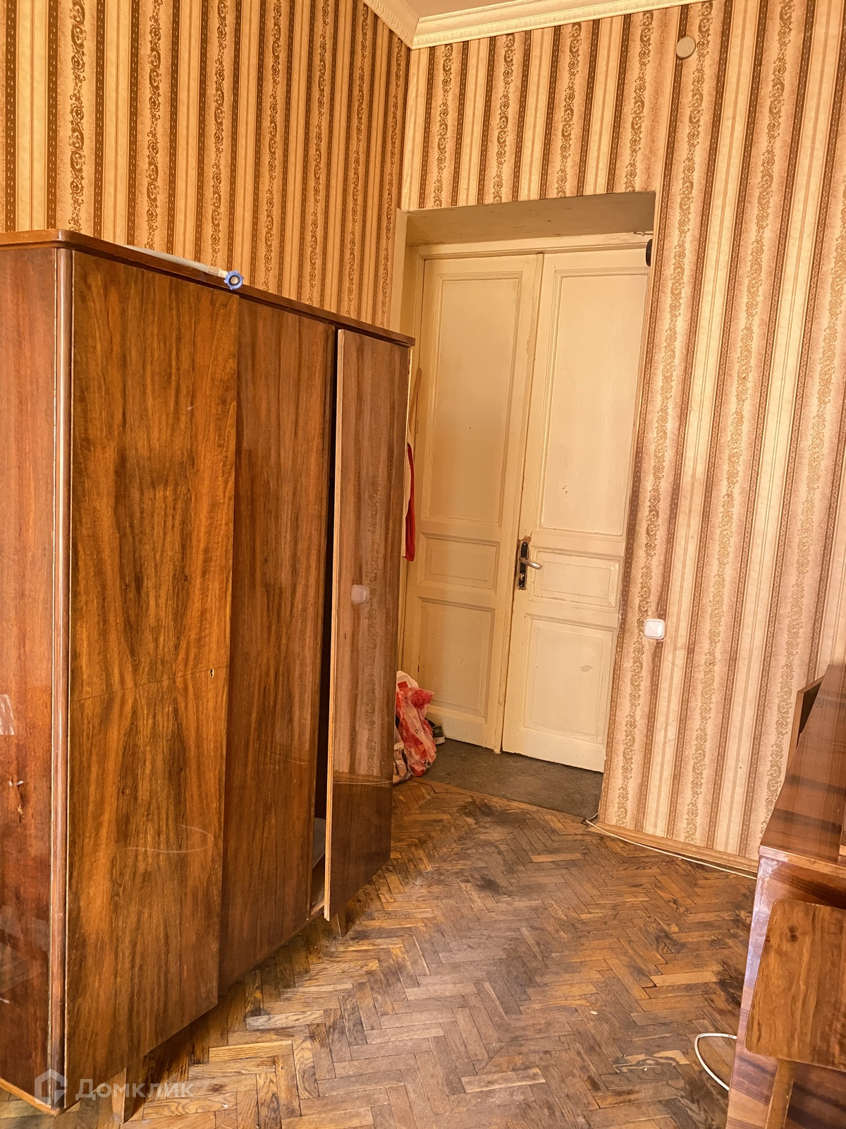 В комнате имеются: платяной шкаф, шкаф для посуды, НОВЫЙ диван.