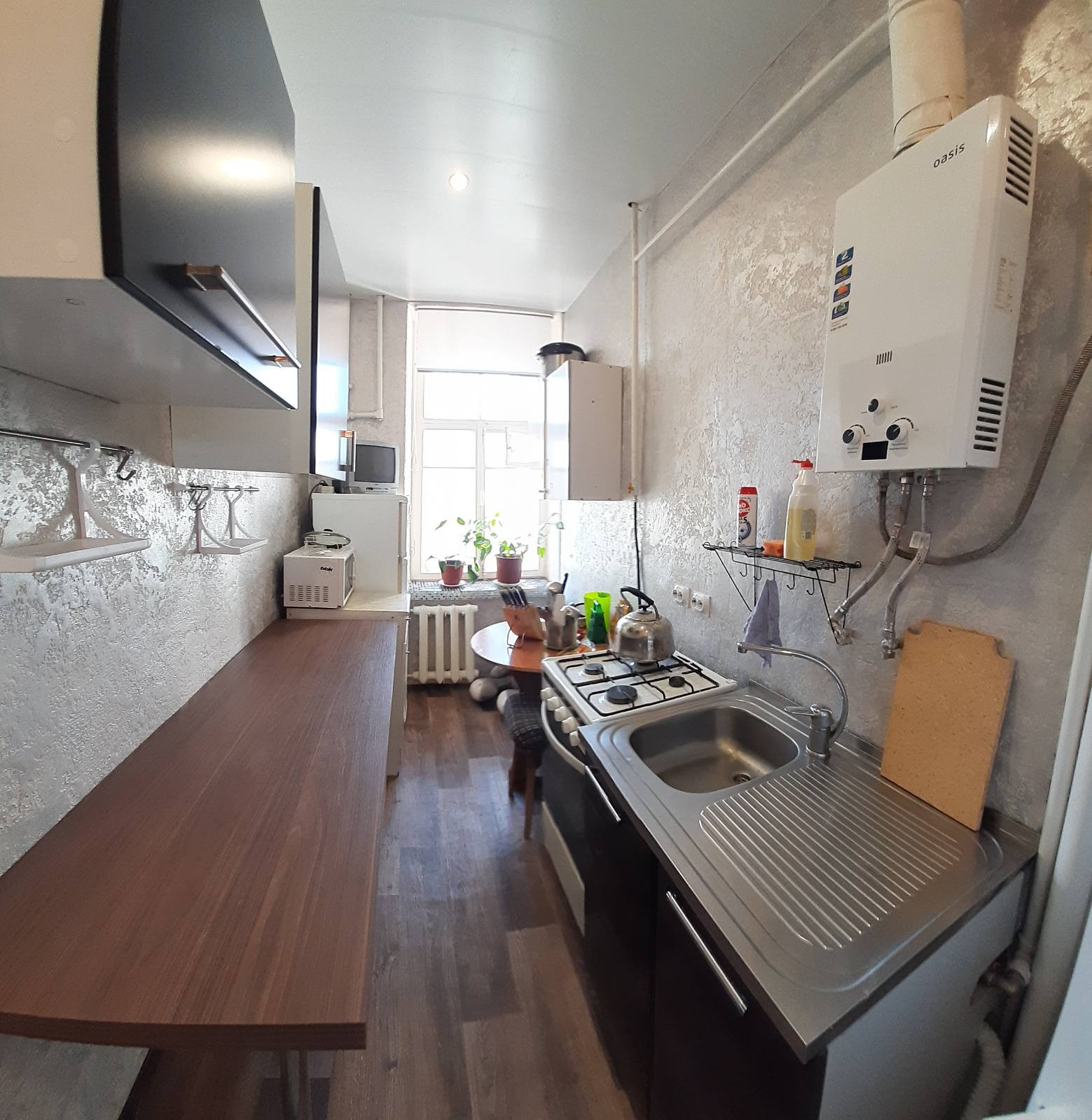 Дом трёх этажный с чистой парадной. В квартире сделан свежий ремонт, также есть открытая лоджия, где можно посидеть с чашечкой кофе. Вторая комната сдаётся в аренду молодому человеку, в третьей комнате проживает молодая женщина с несовершеннолетним ребёнком, приветливая, со всеми можно легко найти общий язык. Во дворе тихо, много зелени. В квартире имеется всё необходимое для проживания (необходимая мебель в кухне и комнате, газовая плита, холодильник, стиральная машина, электрический чайник, тепловая пушка, сушка для белья, телевизор, посуда, новое одеяло).