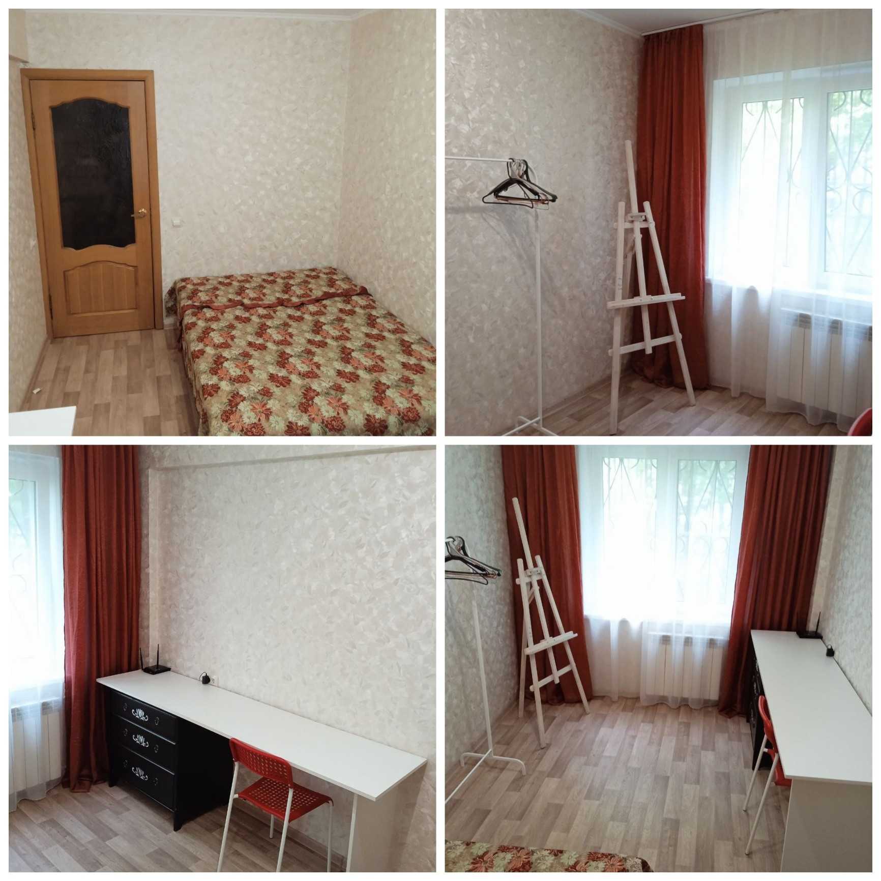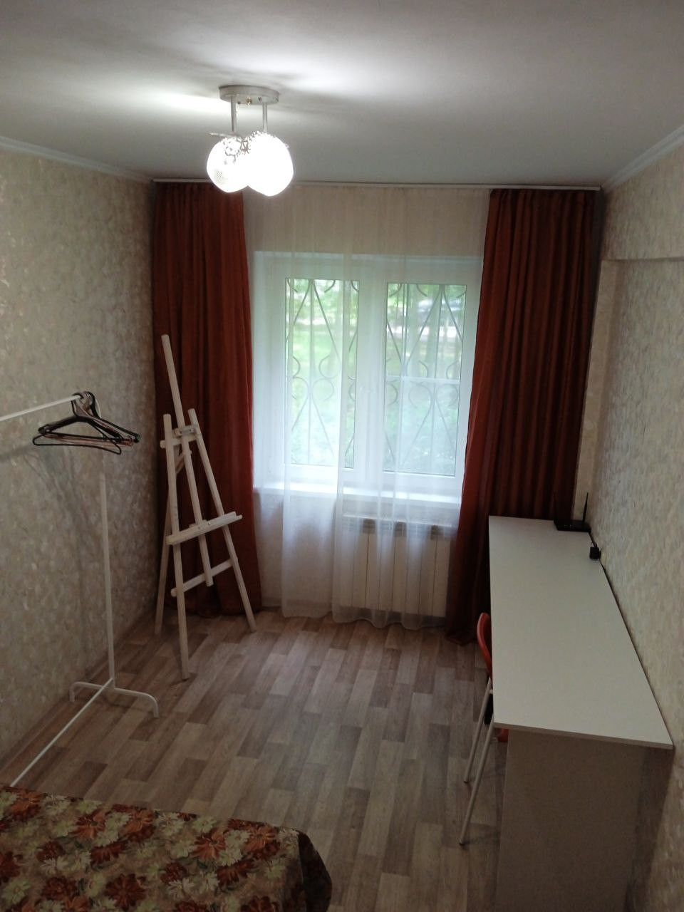 В квартире есть все необходимое (интернет, стиральная машина, микроволновая печь). В комнате есть длинный стол для обучения или работы, односпальная кровать с ортопедическим матрасом, комод для одежды, напольная вешалка.