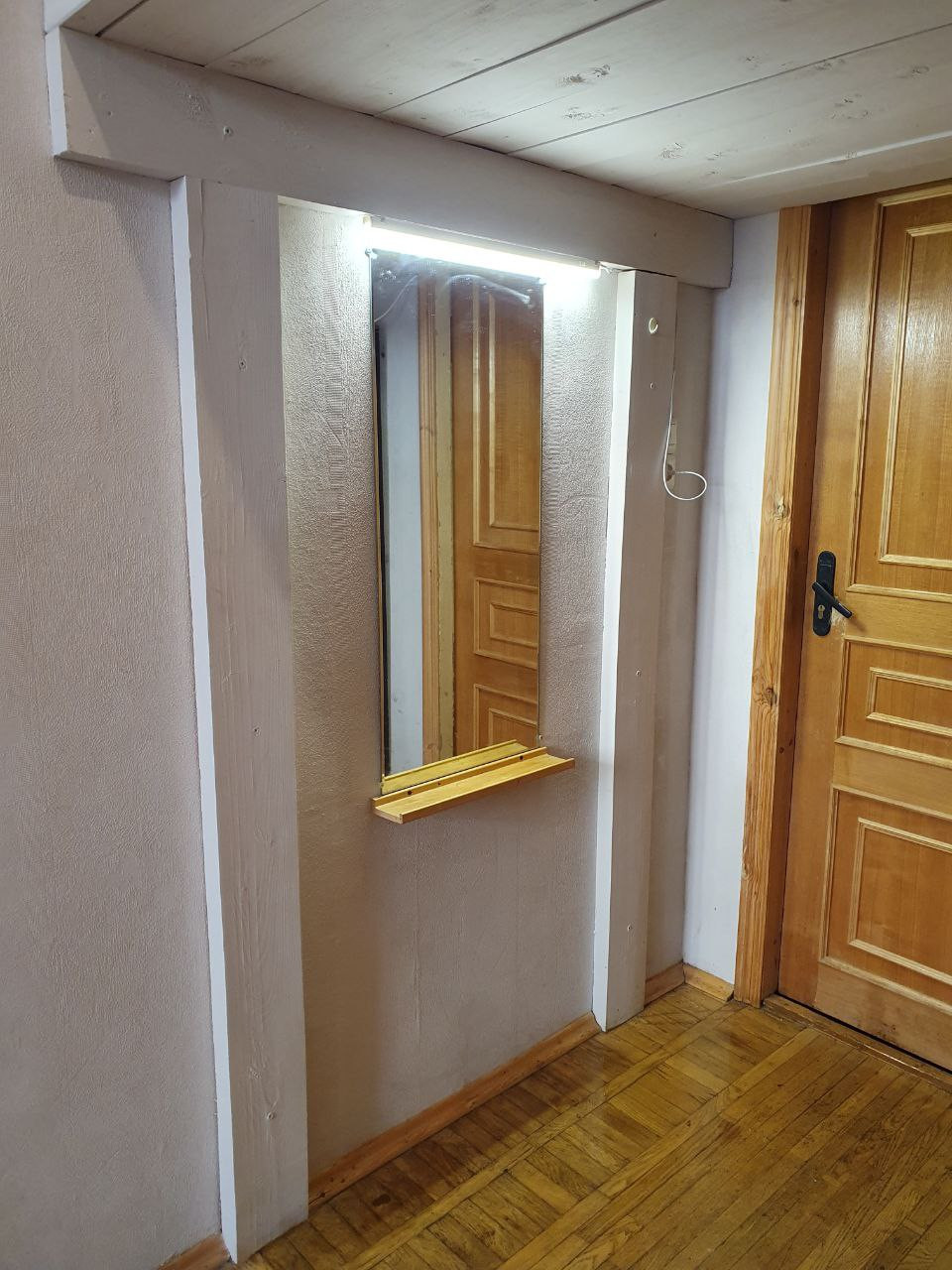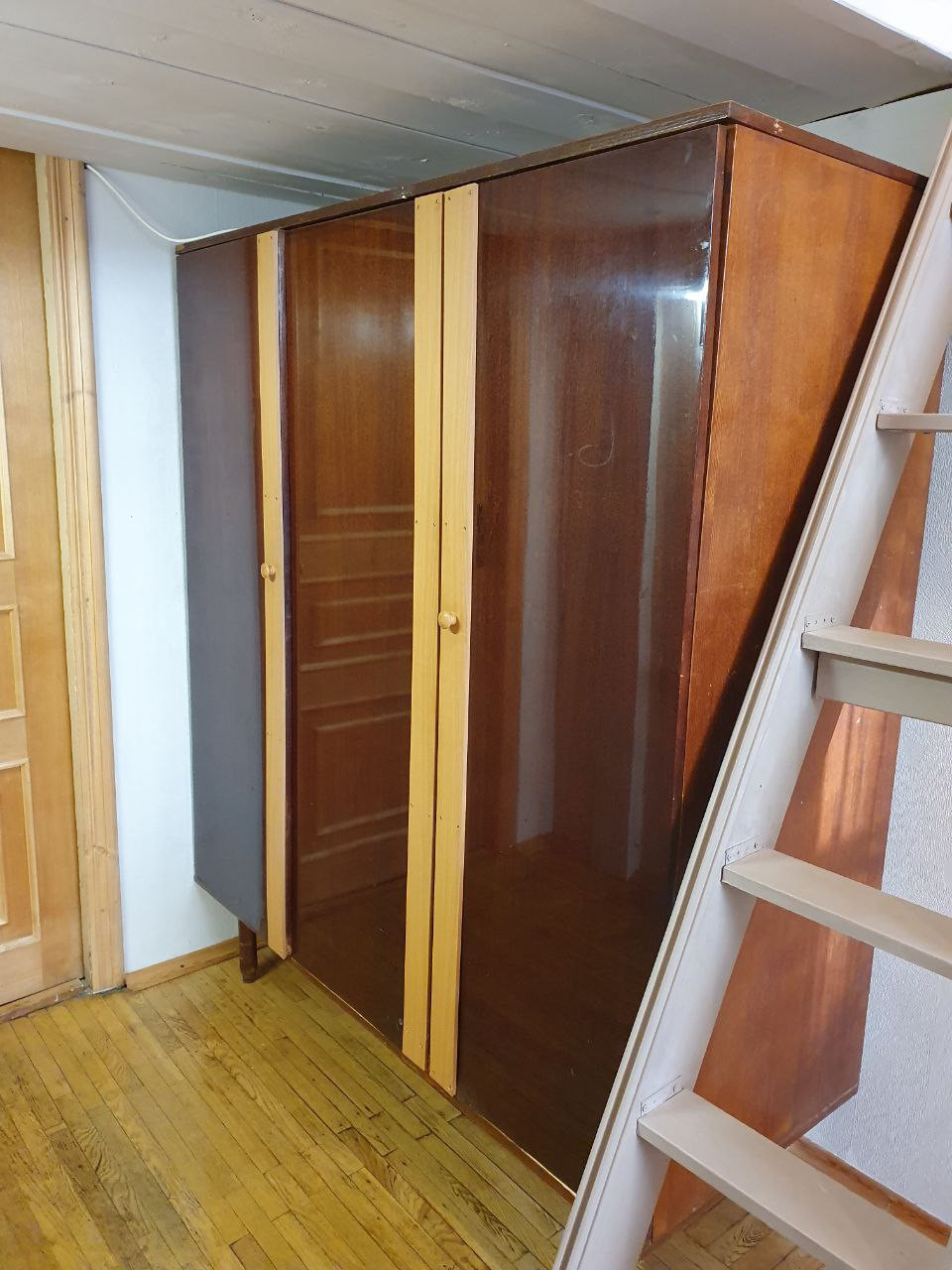 В комнате есть большая кровать на втором ярусе, вместительный шкаф, рабочий стол и большое зеркало. Есть также достаточно свободного пространства, чтобы привнести свою мебель и оформить комнату по своему вкусу.