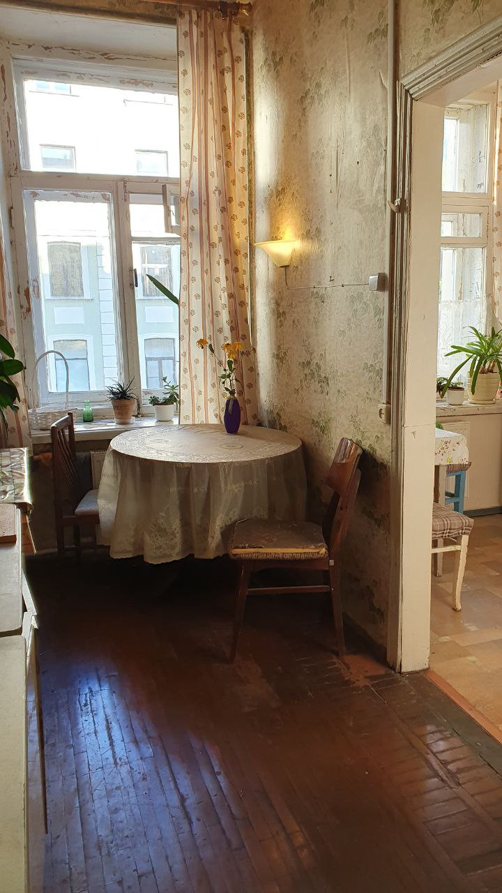 В общей кухне вас встретит уютный круглый обеденный стол и собственный буфет для хранения. Не нужно беспокоиться о бытовых проблемах, так как в квартире есть холодильник, микроволновка, стиральная машина и, конечно же, WiFi.