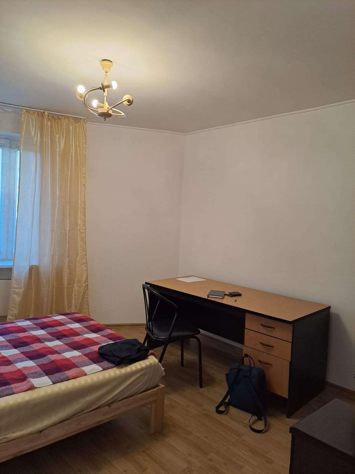 в туалетной комнате. Полы во всех комнатах, холле , на кухне - ламинат. В вашей комнате кровать 140см, с матрасом Икеа. Напротив вашей комнаты - гардеробная 2м2 ( ее можно отдать полностью в ваше пользование). В других комнатах по одному человеку - девушка и девушка ( есть воспитанная ухоженная кошечка, только в комнате) до 30 лет. Адекватные , спокойные , без шумных вечеринок, без вредных привычек, аккуратные, того же ожидаем и от нового соседа. В квартире не курить, убирать по графику
