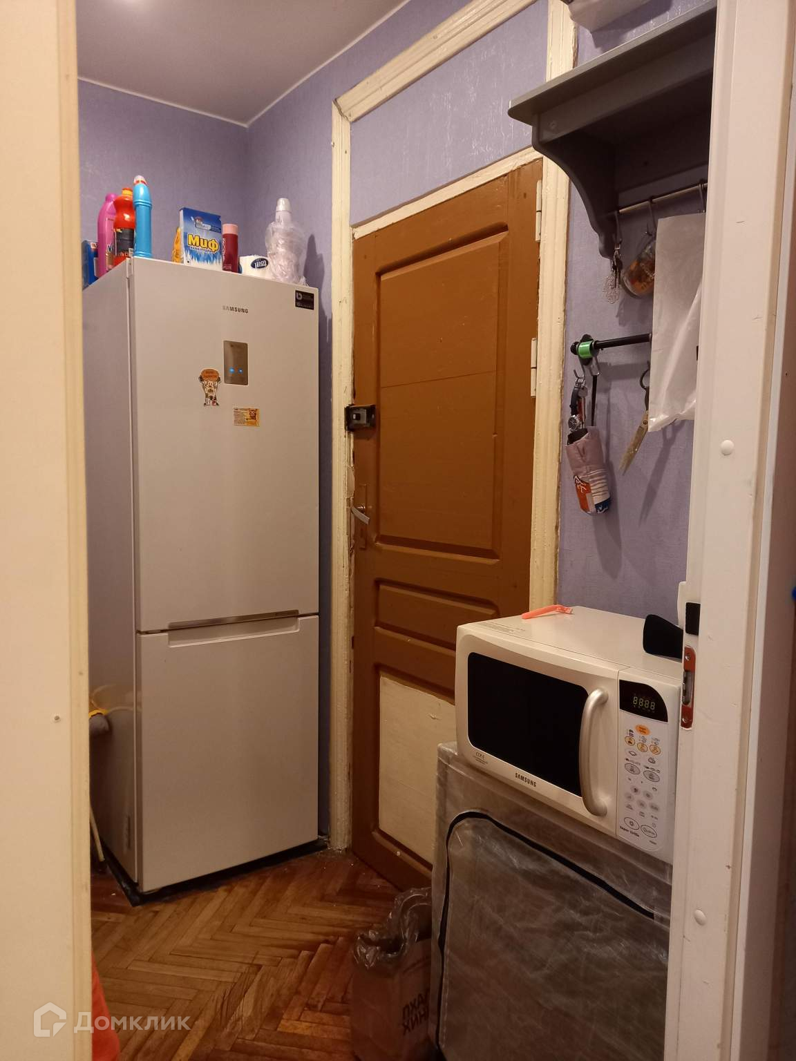 - есть раскладывающийся диван, шкафы, холодильник и микроволновка,