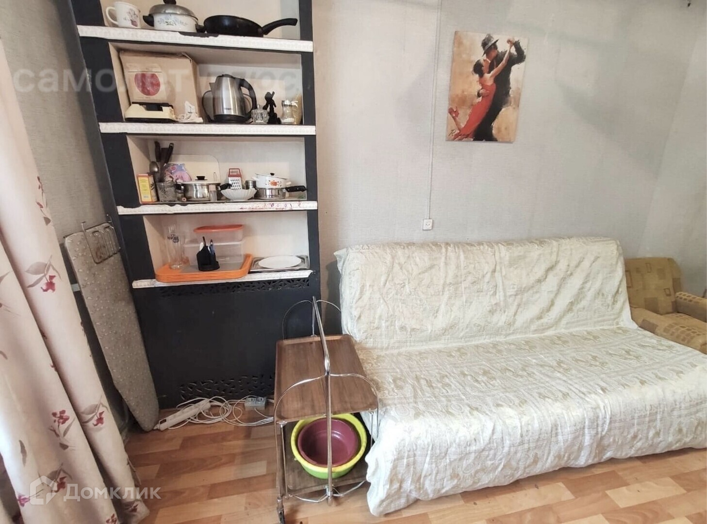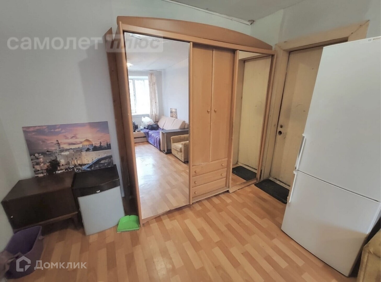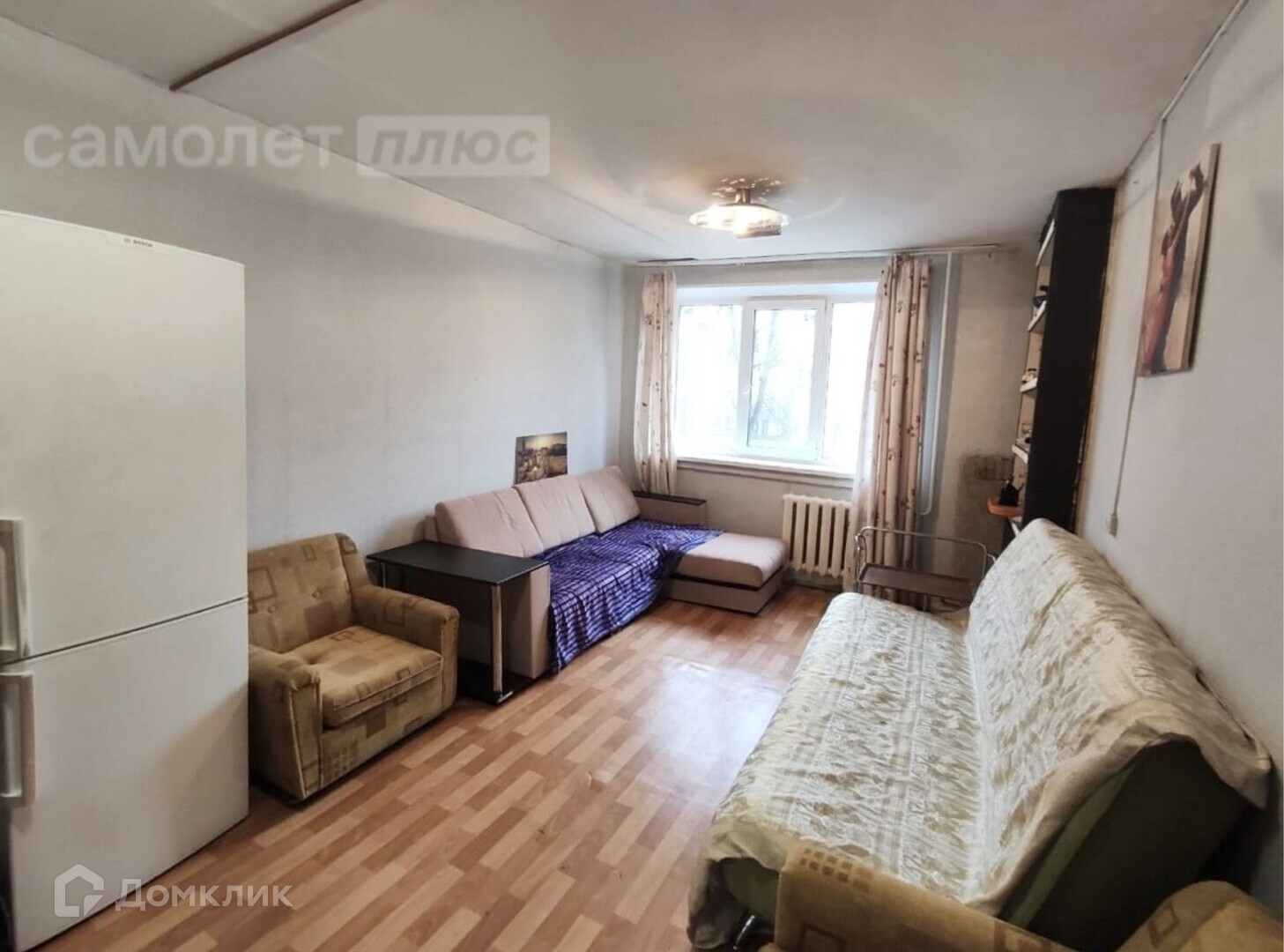 Комната светлая стеклопакеты, окно во двор, теплая, две чугунные батареи. С одной стороны нет ничего, с другой переодически живёт собственница комнаты за стенкой.