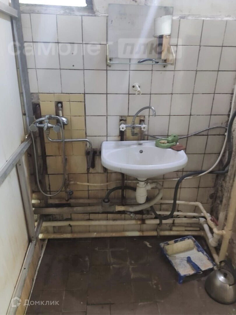 Коммуналка разделена на 2 блока по 4 комнаты, на 2 блока проживают в четырех комнатах. 3 туалета, есть ванна, душ, 5 раковин, две газовые плиты, состояние комнаты на фото