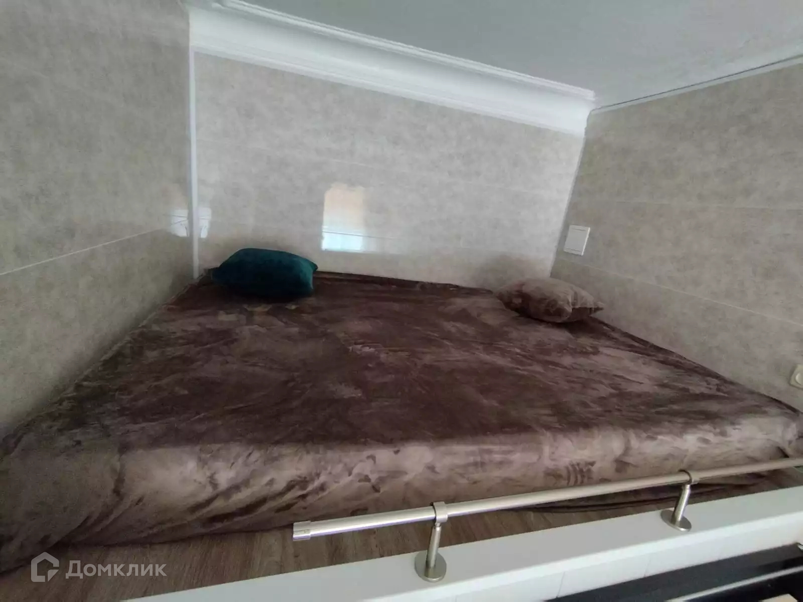 Комната разделена на гостиную зону и спальную зону на втором уровне, куда ведет удобная лестница