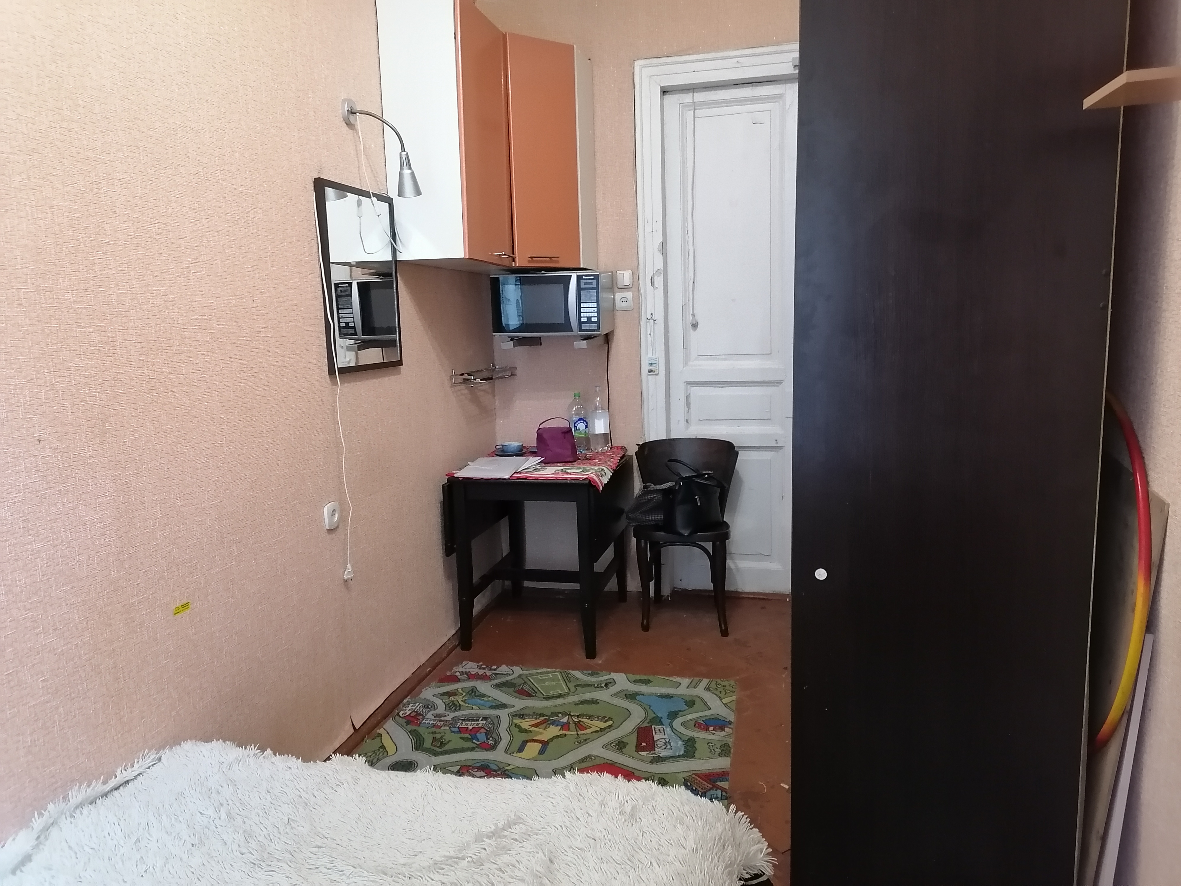 Сдается комната в коммуналке в историческом центре Санкт-Петербурга в 10 минутах ходьбы от 2 станций метро: Пушкинская и Технологический институт. В квартире тихо, несмотря на то, что 7 комнат, соседи доброжелательные. В комнате все необходимое для проживания 1-3 человек, можно с ребенком. В комнате – диван-кровать, шкаф-купе с зеркалом, навесные шкафчики, небольшой телевизор на кронштейне, микроволновка, навесные шкафчики для посуды, полочка.